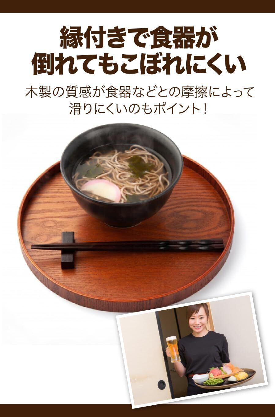 【どこでも使える配膳用品】食器をまとめて運びたい時に便利な直径33cmのお盆。木の温もりを感じられる木製で和の雰囲気も漂い、ご家庭・カフェ・レストラン・旅館など様々な場所で配膳に役立ちます。