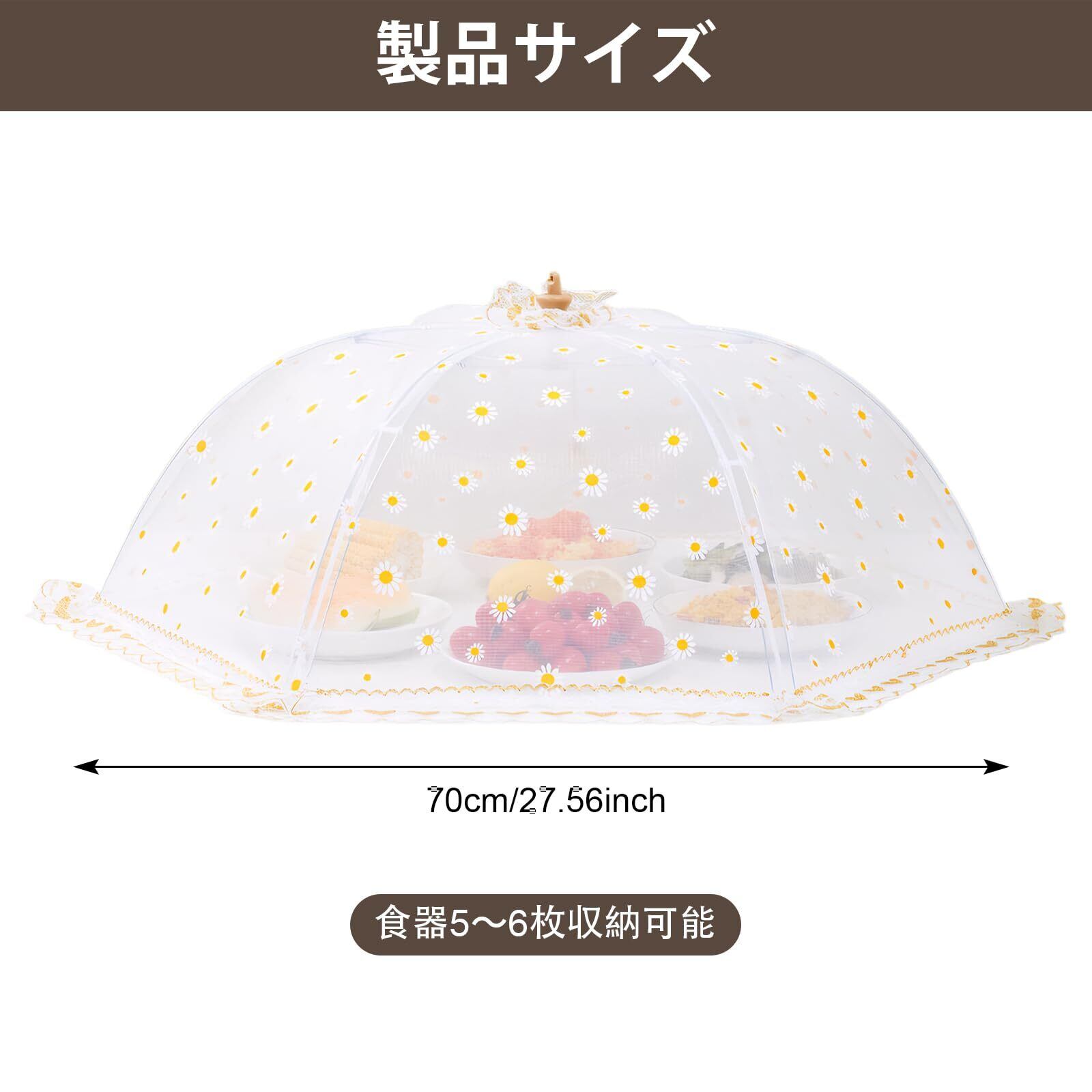 食卓カバー 大きめ フードカバー 細かい 食卓 蚊帳 直径70cm 軽量 虫よけ 埃よけ 細密網糸 通気性 折り畳み式 收納便利 洗える キッチンパラソル バーベキュー キッチン 屋内 屋外 ピクニック (ホワイト)
