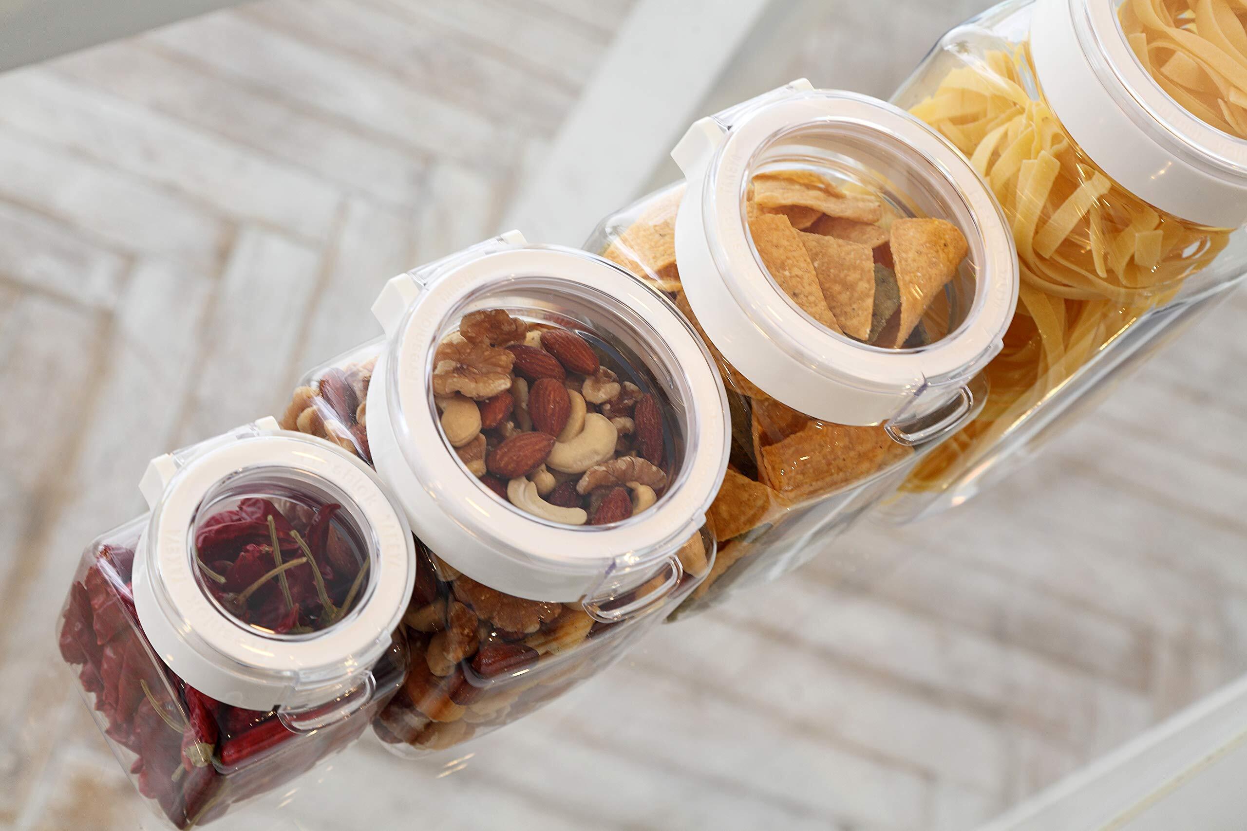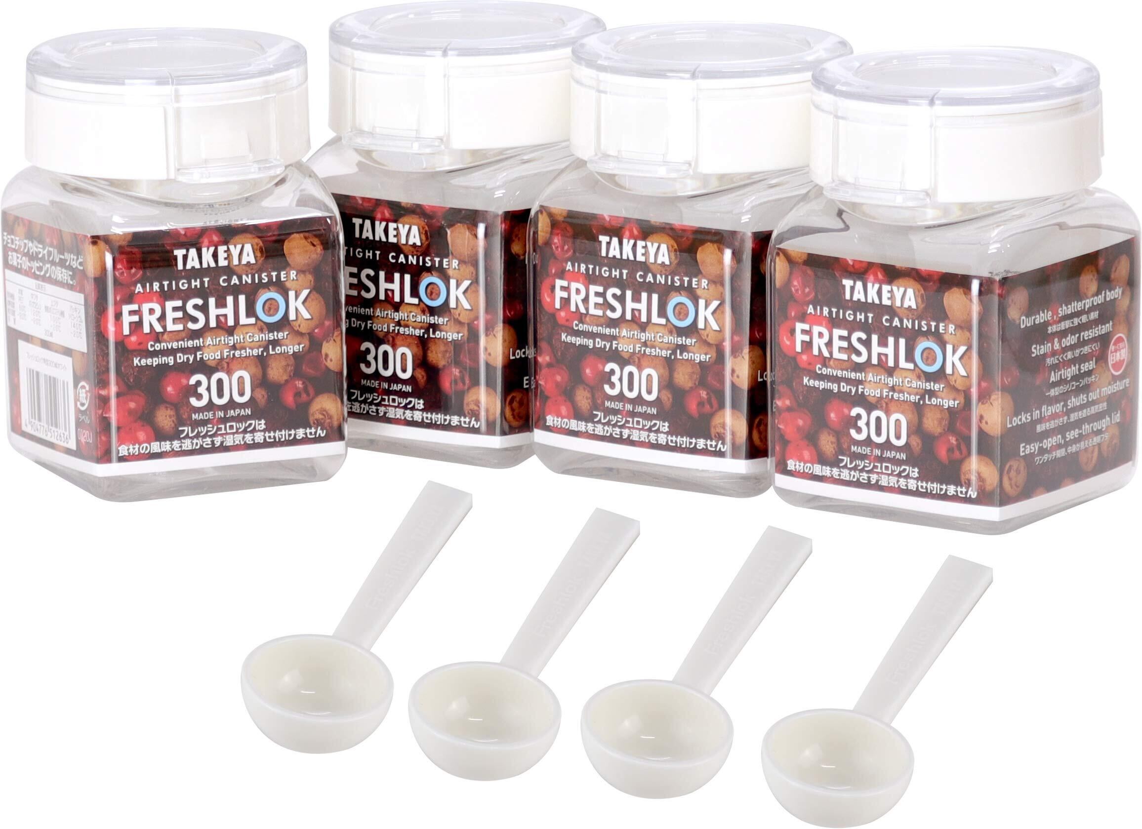 【 限定】【公式】タケヤ 保存容器 4個セット 角型 300ml スプーン付き FRESHLOK 高気密性 密閉 密封 冷蔵庫 プロテイン スパイス 調味料 小麦粉 片栗粉 パン粉 ナッツ お菓子 TAKEYA フレッシュロック ホワイト