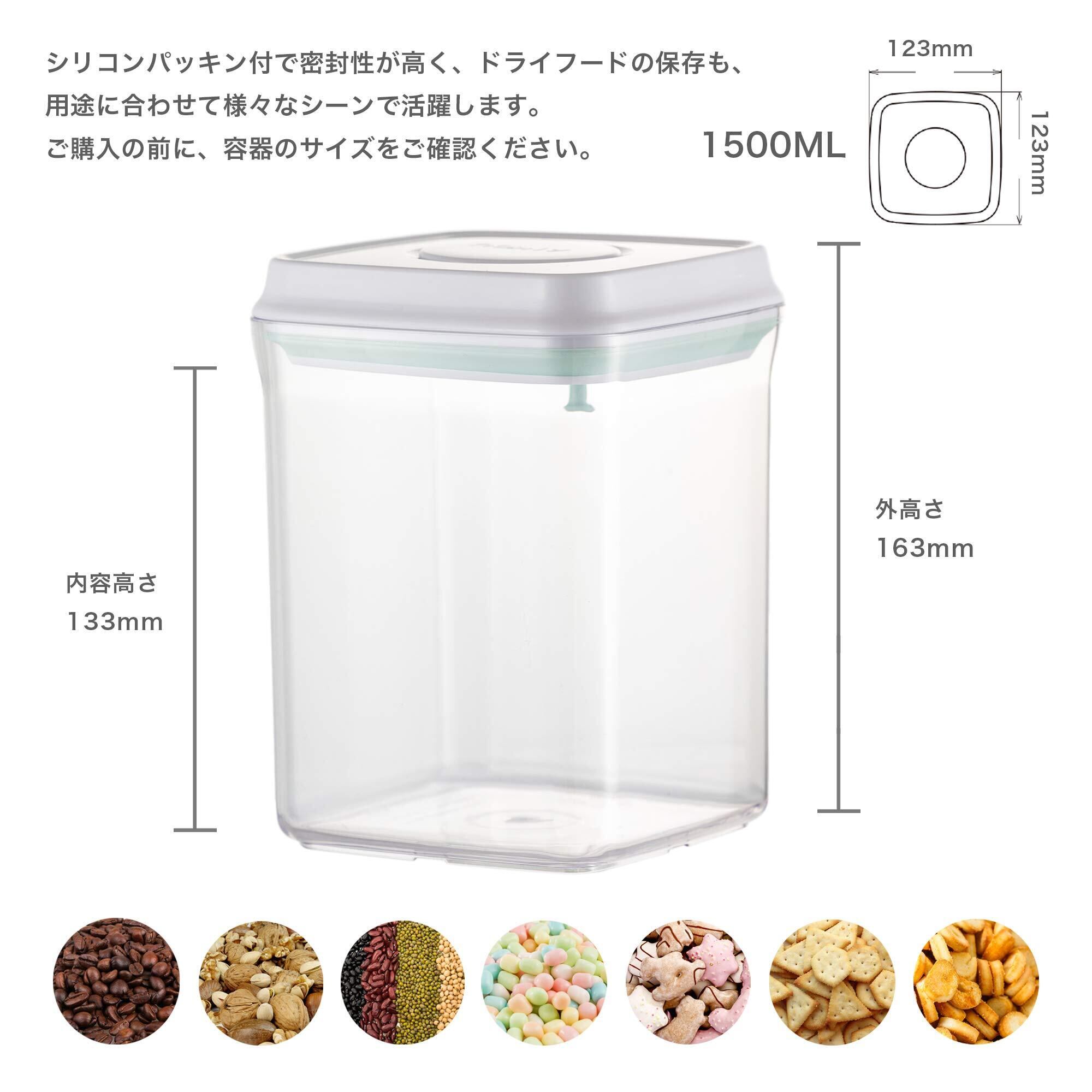 RECYCO キャニスター 密閉容器 食品保存容器 プラスチック ペットフードストッカー ポップアップコンテナ 片手で簡単開閉 湿気を防ぐ 透明 1500ml(辺12.3㎝*高さ16.3㎝) 冷凍OK 積み重ね収納便利