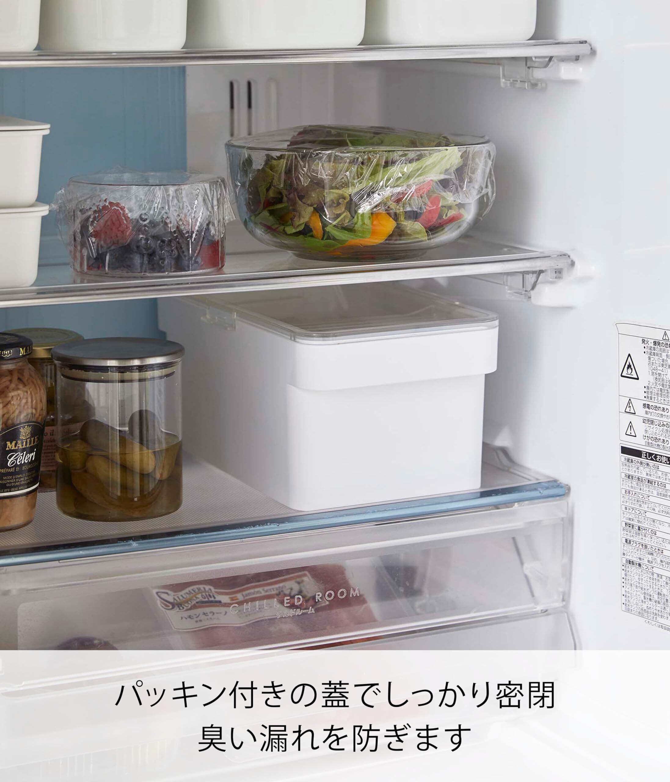 山崎実業(Yamazaki) 密閉ぬか漬けケース 水取り器付 ホワイト 約W28XD16.5XH12.2cm タワー tower 大きく開く透明蓋 冷蔵庫収納 野菜室収納 4944