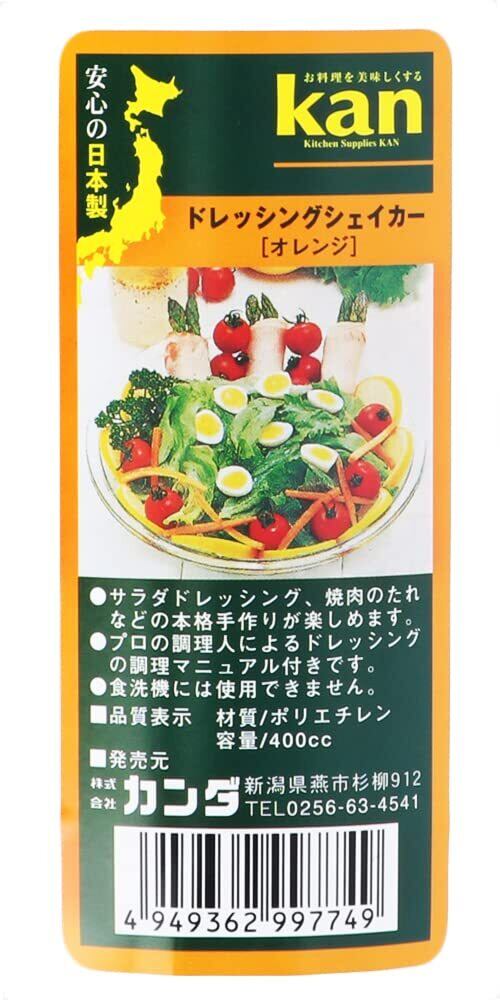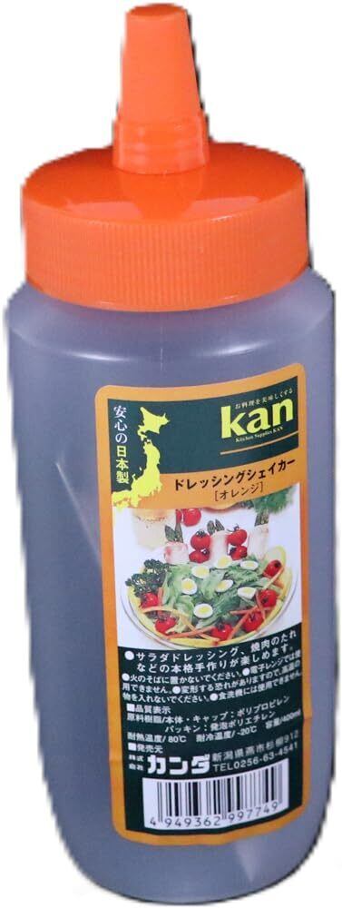 カンダ(kanda) kan ドレッシングシェイカー ポリプロピレン製 400cc 日本製 燕三条 保存容器 ケチャップ マヨネーズ オレンジ 362033