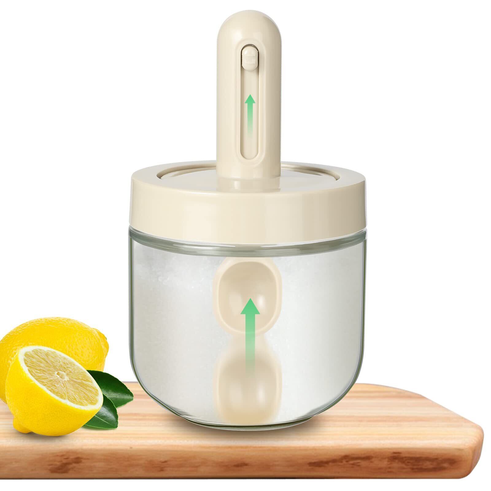 Rockykey 調味料入れ 調味料ボトル 調味料ポット二個セット 調味料収納 スプーン伸縮可能 密閉 塩入れ 砂糖入れ ガラス 保存瓶 便利 湿気防止