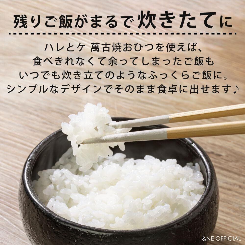 アンドエヌイー(&NE) 萬古焼 おひつ 大 ハレとケ 黒 3膳分 ご飯 1.5合 日本製 陶器 電子レンジ オーブン 対応 耐熱 まるで炊き立て ふっくら 丸型 大きい おしゃれ NMT-306L-BK