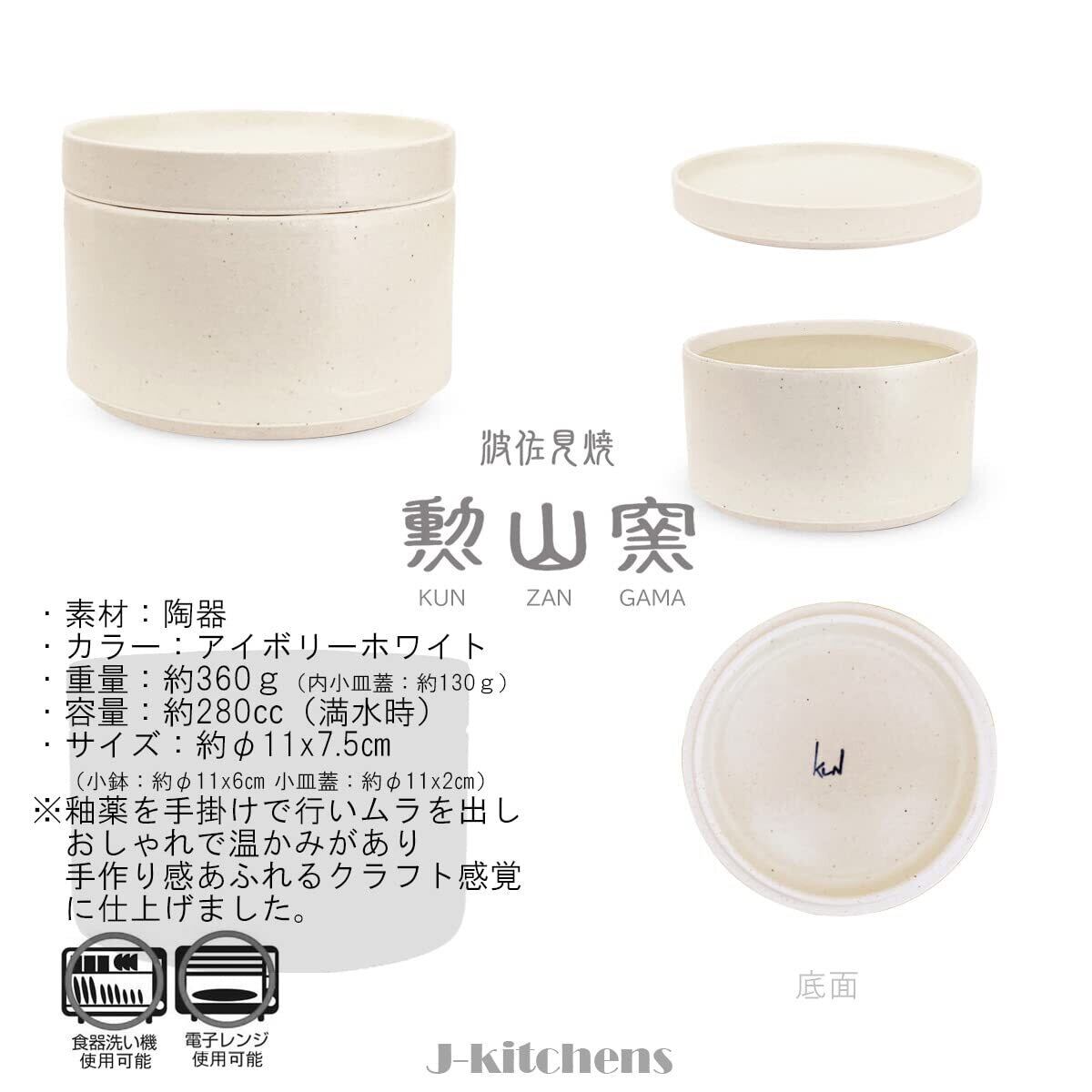 ジェイキッチンズ J-kitchens 勲山窯 おひつ 一善 (ごはん茶碗小 1杯分) 陶器 電子レンジ対応 ホワイト φ11x7.5cm 食洗機対応 北欧 風 波佐見焼 日本製