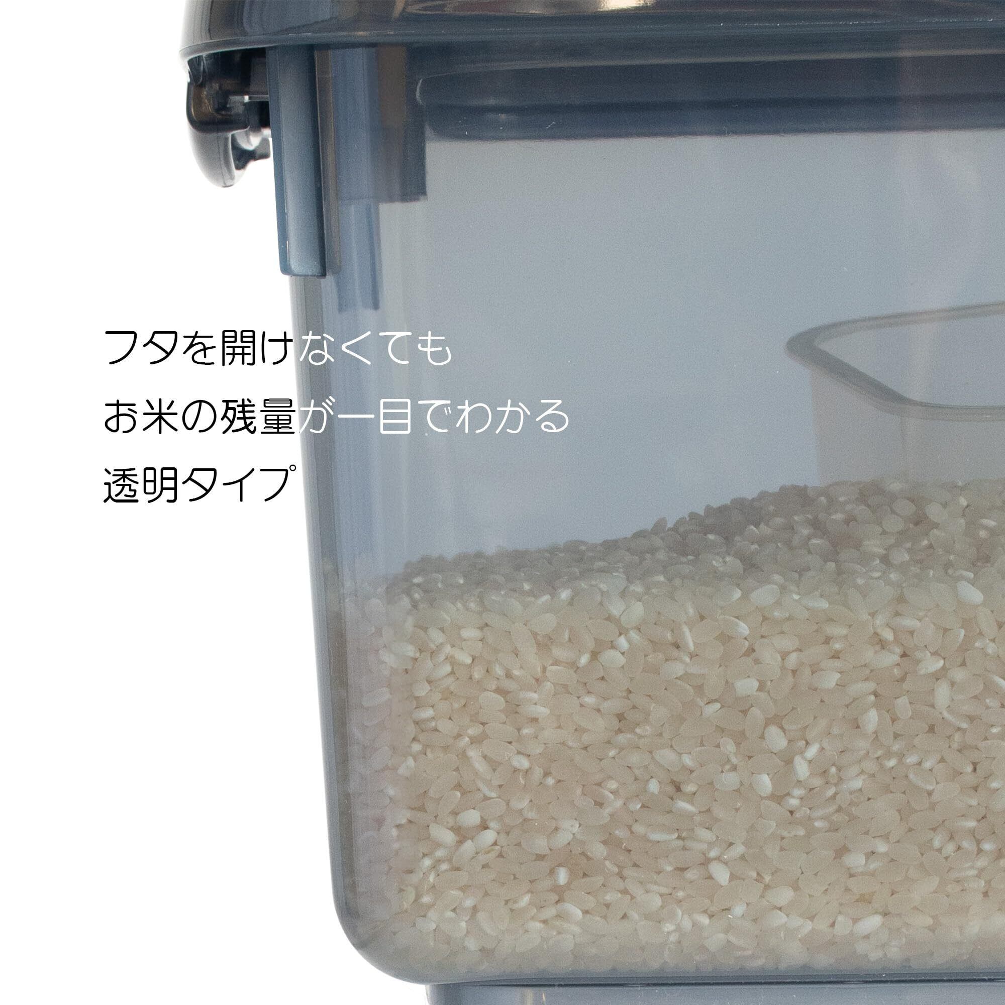 計量カップ付きで片手で簡単に開閉できるコンパクトなお米ケース。透明で中身が見えるのでお米の残量が一目でわかる。シンク下にも収納可能なコンパクトなサイズ。システムキッチンでも使えます。安心安全の日本製。