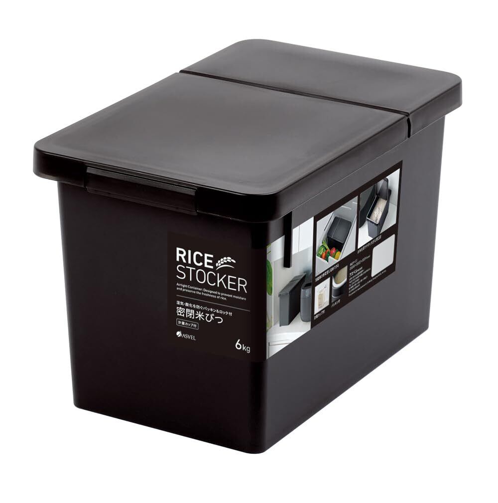 アスベル S密閉米びつ 6㎏ パッキン付 ロック シンプル インテリア お洒落 黒