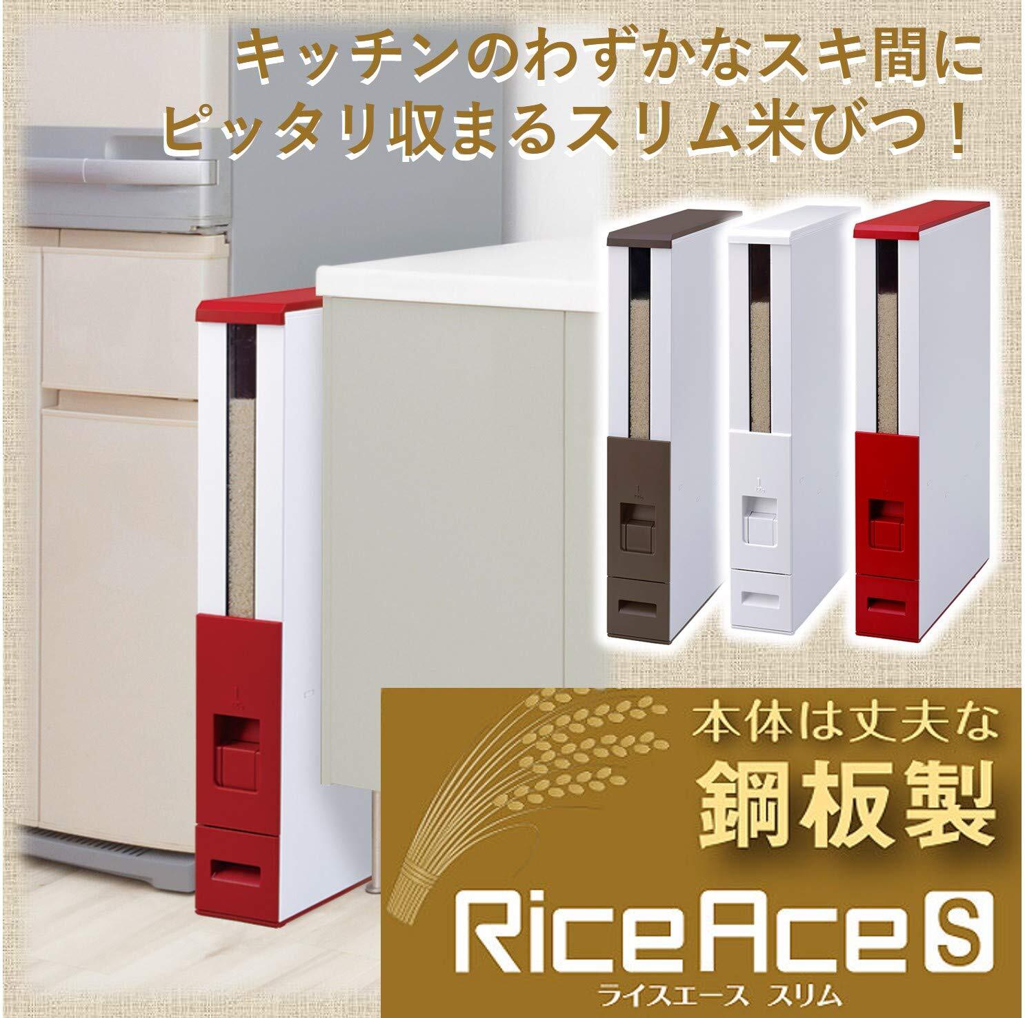 エムケー精工 米びつ 12kg スリム 幅10cm 鋼板製(頑丈/サビにくい) ライスストッカー レバー方式 ライスエース ホワイト キャスター付き RCB-12SW