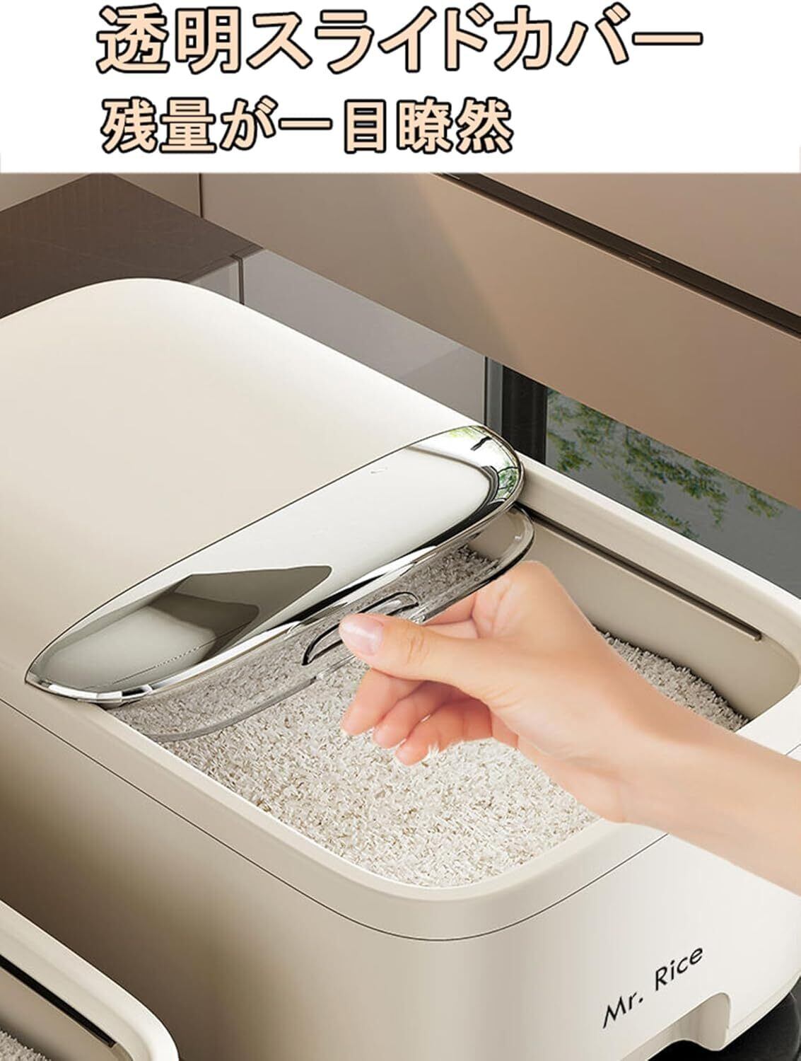 【開閉設計】米を取り出しやすく、湿気や酸化を防ぎ、鮮度を長時間保つことができる便利な開閉設計。透明な窓が付いているので、ゴミ箱の中に何メートル残っているかが見えます