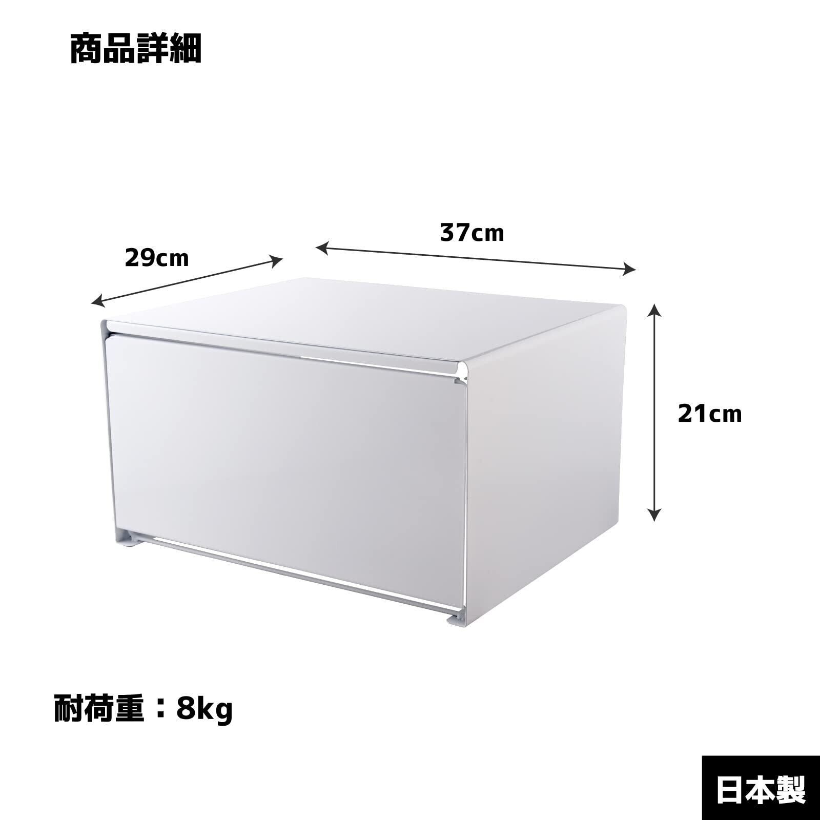 ●本体サイズ:幅37×奥行29×高さ21cm●重量:3Kg●天板耐荷重:8kg●材質:本体/スチール(エポキシ粉体塗装)、脚ゴム/シリコーンゴム●付属品:取扱説明書●原産国:日本