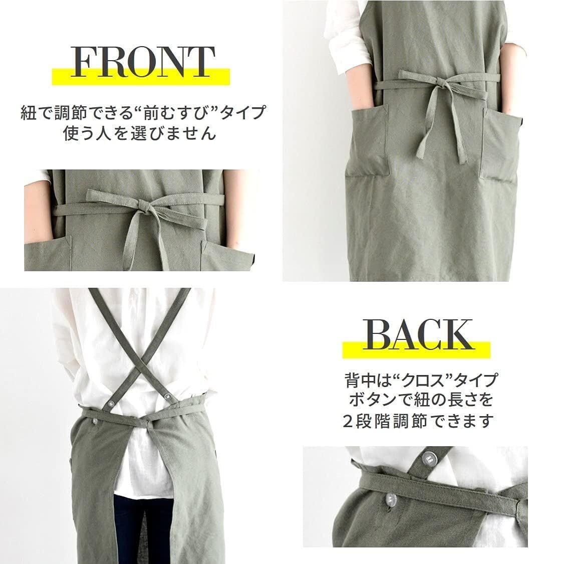 レップ(Rep) エプロン 北欧 ポケット2個付き カフェエプロン 大人用 着丈73cm (アビチュアル ソル) カーキ 1313 KHAKI プレゼント