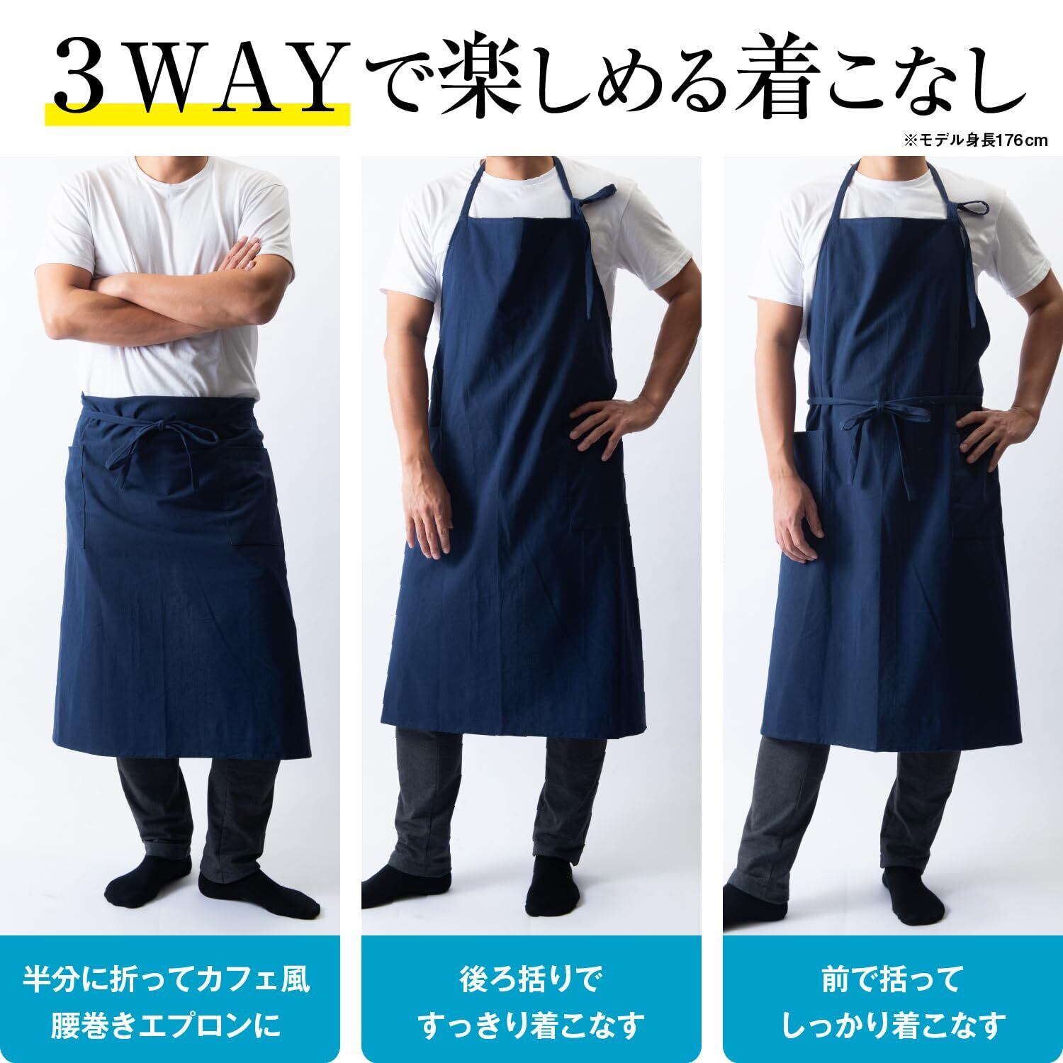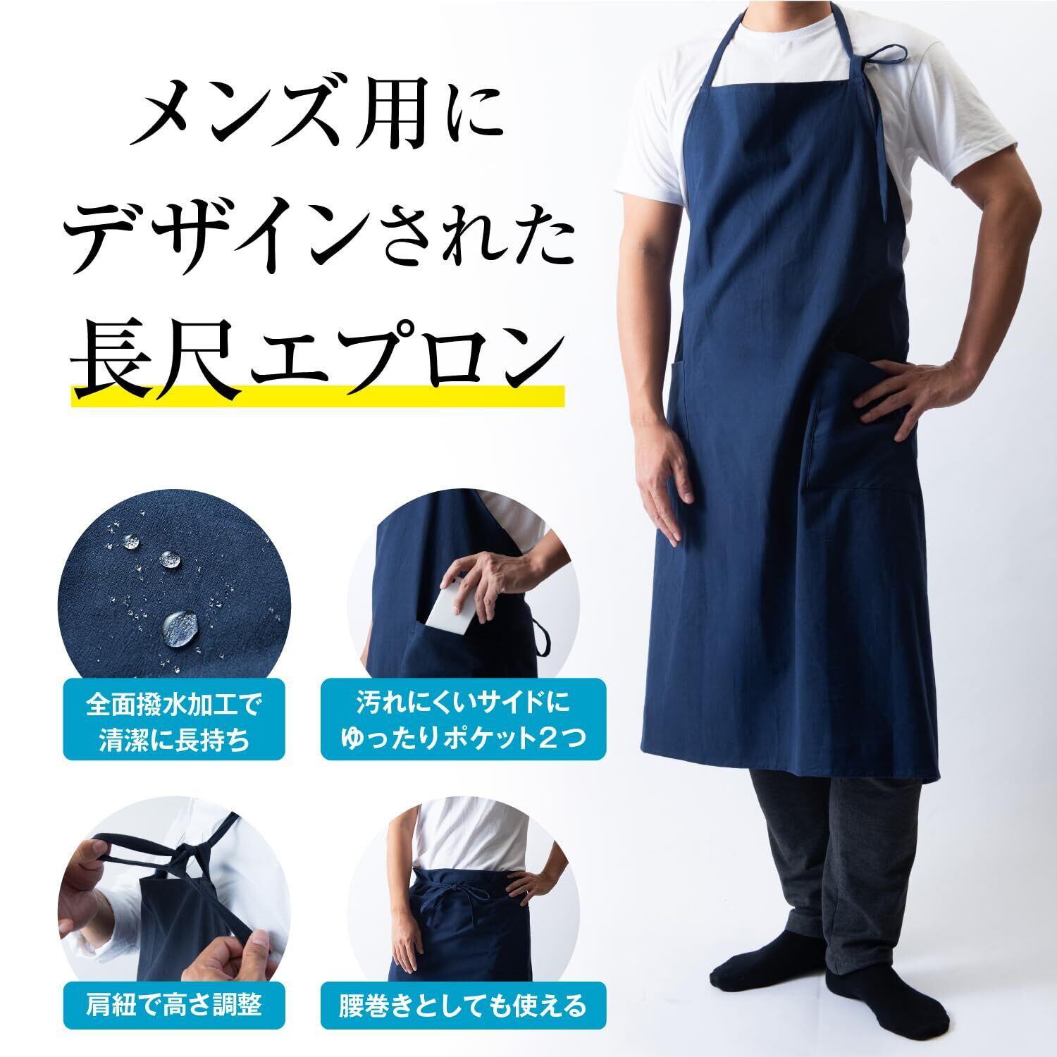 [Chapdaddy] エプロン メンズ 大きいサイズ ロング丈 撥水 おしゃれ かっこいい 無地 ポケット付き カフェ・保育士・料理用 首掛け/腰巻き 2way 作業用