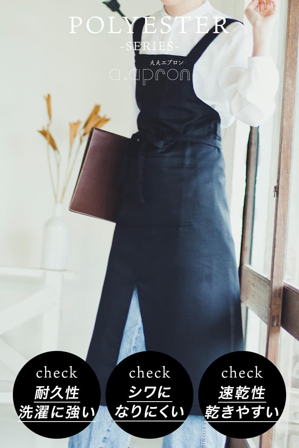 2. 高い耐久性: このエプロンは防シワ性があり、長時間の使用や洗濯にも耐えます。普段使いはもちろん、プロのキッチンなどでの頻繁な使用にも最適です。