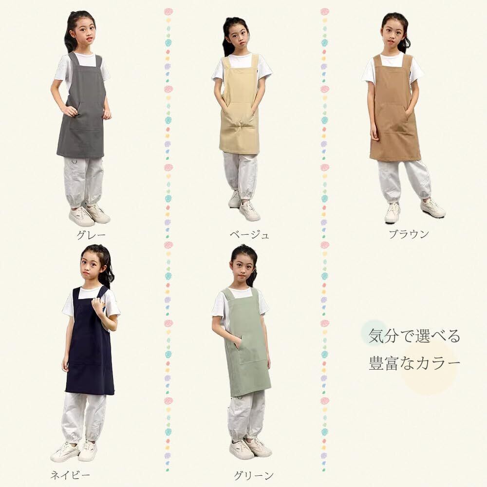 [JIAHU] エプロン 子供 キッズ 子供エプロン 男の子 女の子 被るだけ 子供用エプロン 三角巾 セット 小学生 中学生 三角巾セット リネン 子ども おしゃれ 可愛い 着脱簡単