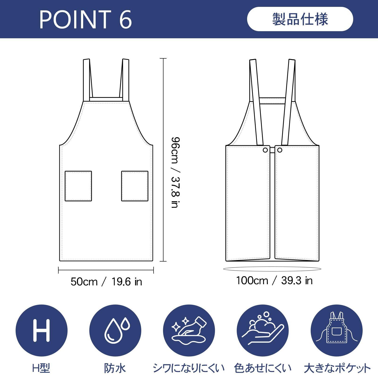 【体型を選ばない!】エプロンは大きめのH型デザインで、着丈は約80cmで、立体的なカッティングが施されています。背面の二重ボタンでサイズを調節できるため、さまざまな体型に適しています。どんな体型の方でも快適に着用したい方には、このエプロンをおすすめします。シンプルでおしゃれなデザインで、どんな人にも似合います