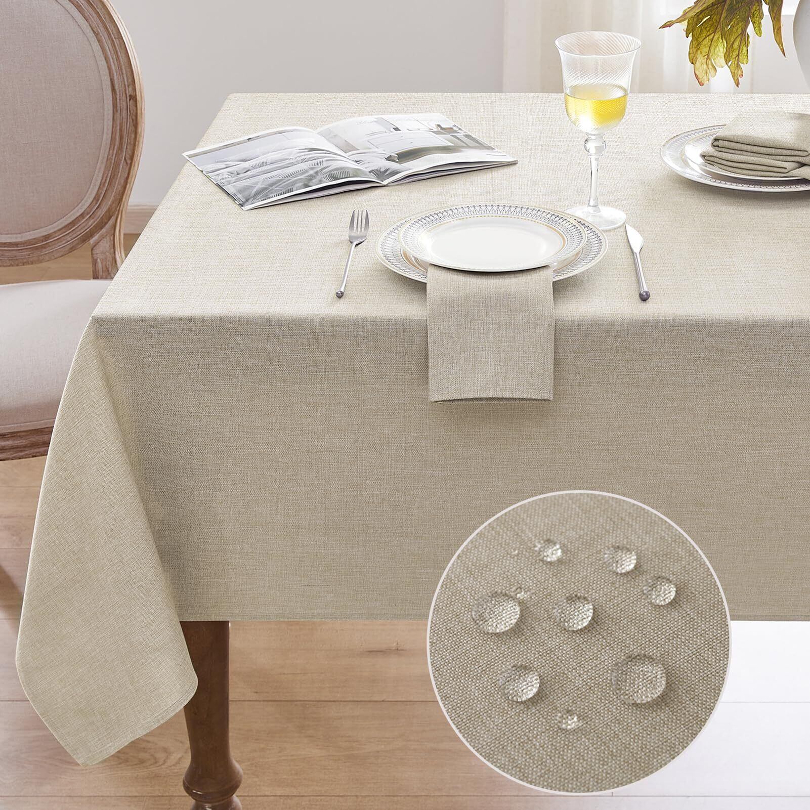 Softalker テーブルクロス 撥水140×180cm 長方形 類麻 布 テーブルクロス-汚れ防止 お手入れ簡単 無地 テーブルマット 高耐久 防水 防油 おしゃれ 北欧風 家庭用 業務用 机カバー 食卓カバー ベージュ Tablecloth