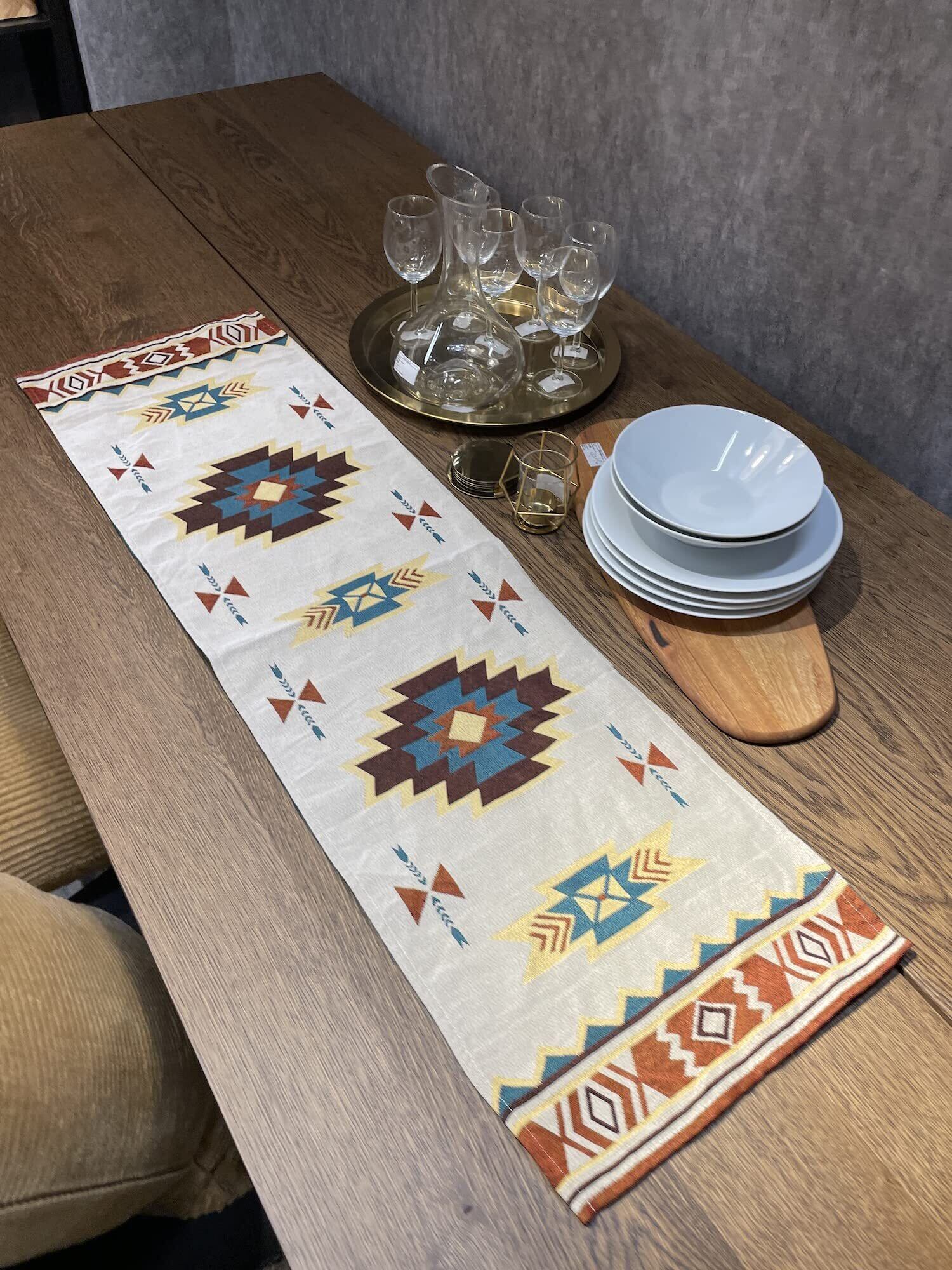テーブルランナー キリム柄 オルテガ柄 エスニック キャンプ アウトドア ピクニック プレイスマット おしゃれ 35X120cm,
