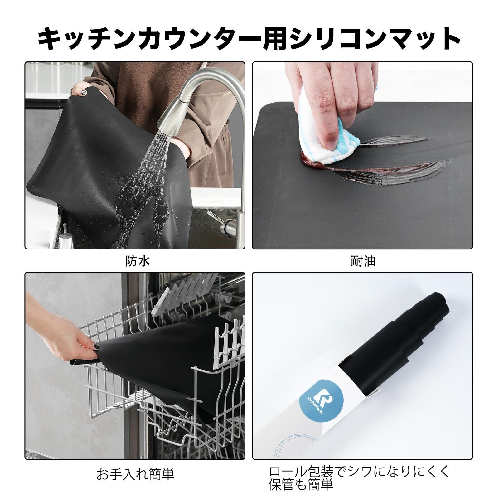 【拭けるキッチンマット】 調理台やカウンターやテーブルをキズ・汚れからガード、こぼしてしまってもサッと拭き取れる、シリコン素材も何をこぼし简続き擦きできます。 お手入れがとても簡単です。汚れてもサッと洗えるので、清潔にご利用頂けます。 柔軟性に富み、洗濯し易い、洗って繰り返し使えます。クリーニングがすごく簡単で、もし、水がかかって、汚れたとしても、食洗機で洗えるので、繰り返し使えてエコですね。