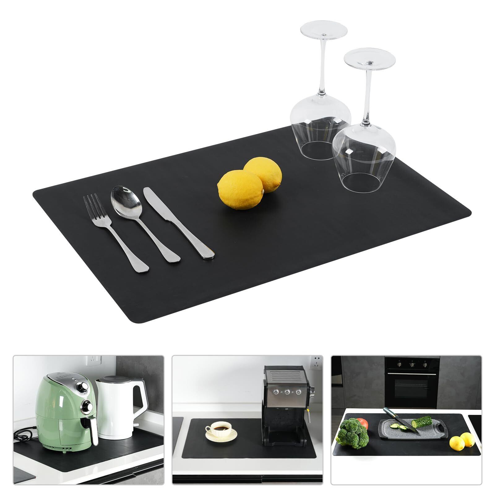 シリコンマット キッチンマット 厚手 断熱 調理台保護マット 大判 シリコン シンクマット 滑り止め 調理用 食事マット 飾り 食卓 華やか キズ防止 汚れ防止 防水 吸音 コンパクト収納 ランチョンマット 引越し祝い プレゼント (ブラック, 30*40cm) [並行輸入品]