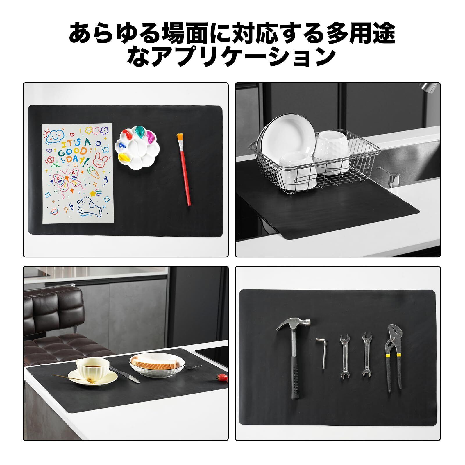 【多機能マット】高品質の大きいシリコンマットはペストリーマット、テーブルマット、置き場マット、はたくマット、引き出しマット、カウンタートッププロテクター、テーブルマット、プレースマット、フリーズドライマットなどの表面保護、雑コレクターとしても最適。食品の準備にも適合。