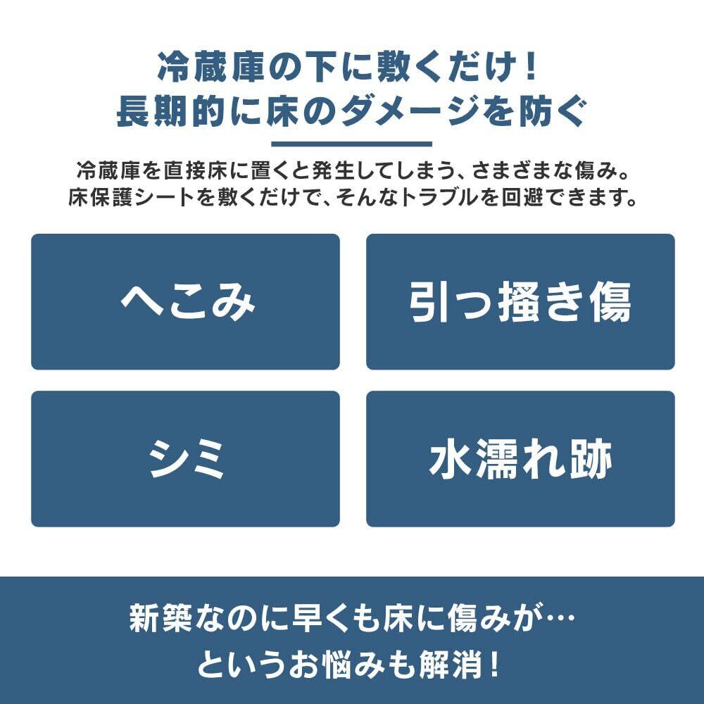 冷蔵庫マットの使用時は、床面に直接貼り付けないでください。また、床面が乾燥していない場合や、床面が汚れている場合は使用しないでください。