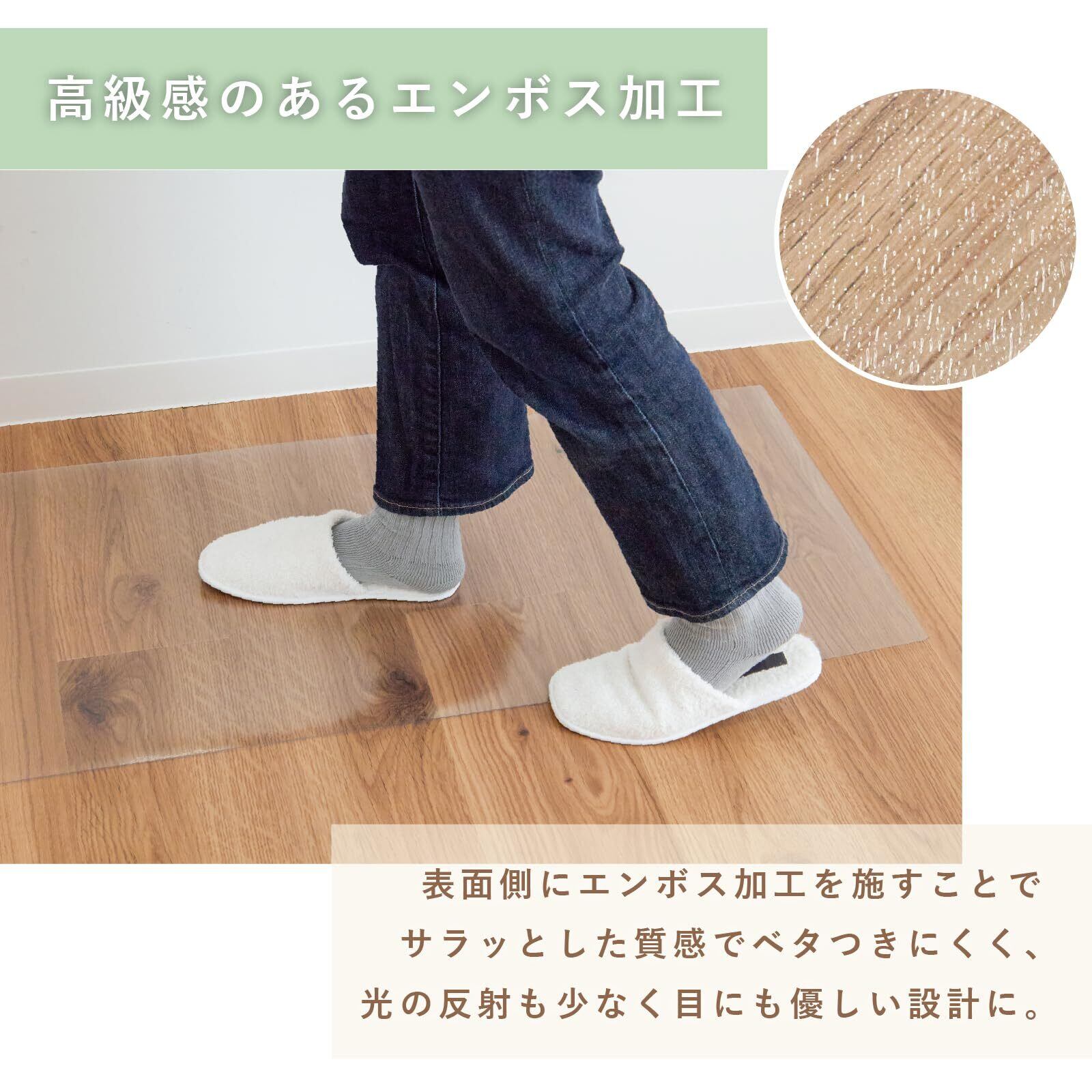 透明なので、敷いた際にお部屋が狭くなるような印象にならず、どんなインテリアにもなじみます。