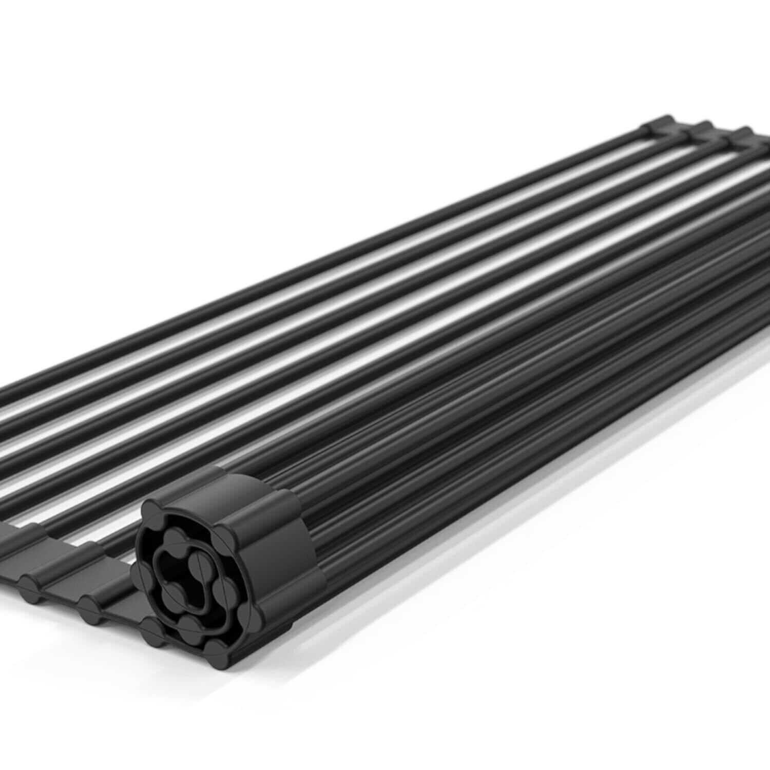 【基本仕様】折り畳み式の水切りラックです。小さく丸めてたためる設計でサイズをご自宅のシンクの大きさに合わせられるので、キッチン周りのスペースを有効活用できます。耐荷重18kg, 耐熱250度の特別仕様のため、2人分の皿・カトラリーなど大容量のものを置いても安定・安心です。さらに棒と棒の間を切ることができるので、お好きな幅に調節できます。※シンクの内径が約48cm以内まで対応可能(※お使いのシンクの形状によって内径が異なります、ご購入前に必ずご確認いただきますようお願いいたします)