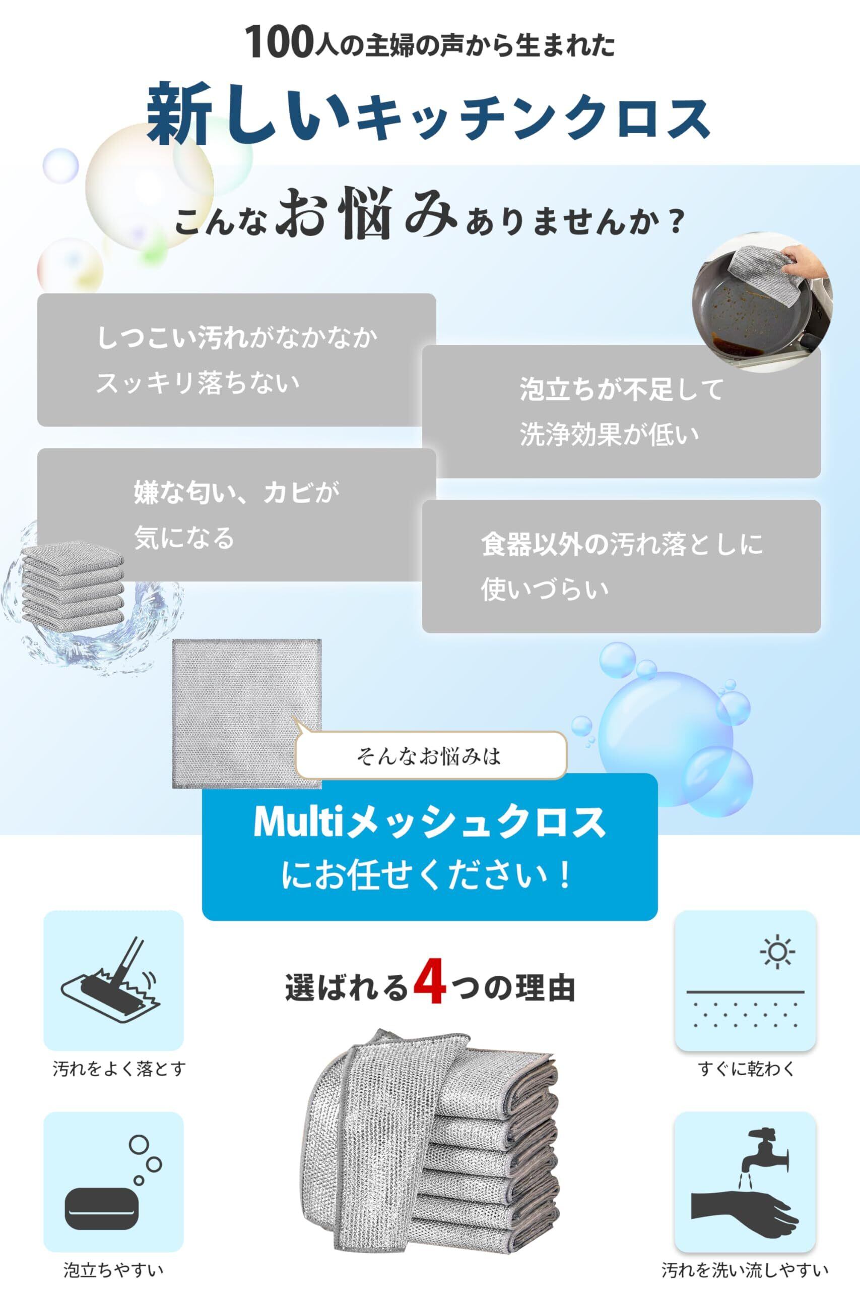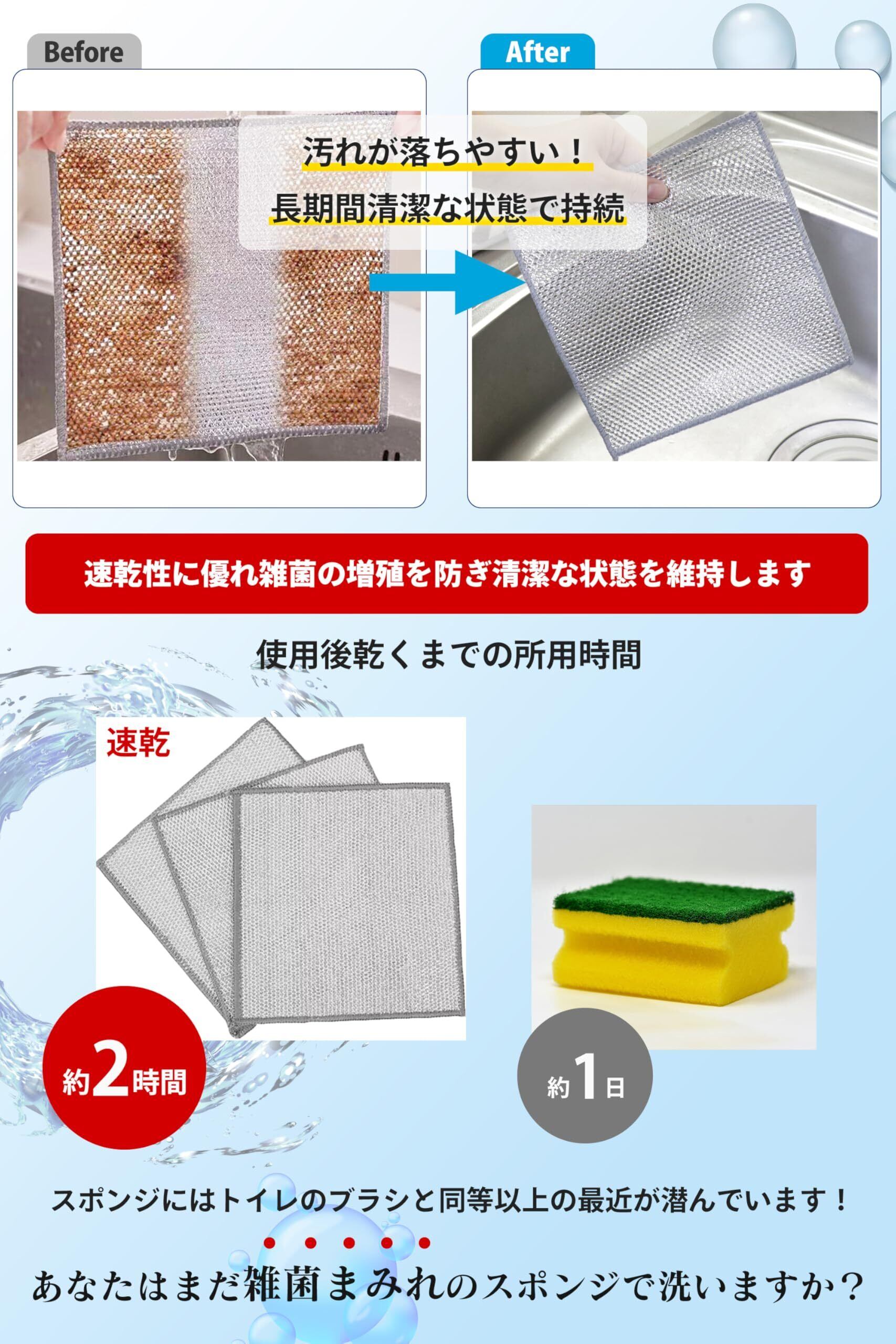 【驚異の吸水力&速乾性 いつでも清潔】特殊メッシュ素材が水分を素早く吸収します。速乾性が高くすぐに乾くきます。雑菌まみれのスポンジを使うことなく、清潔な状態で洗い物ができます