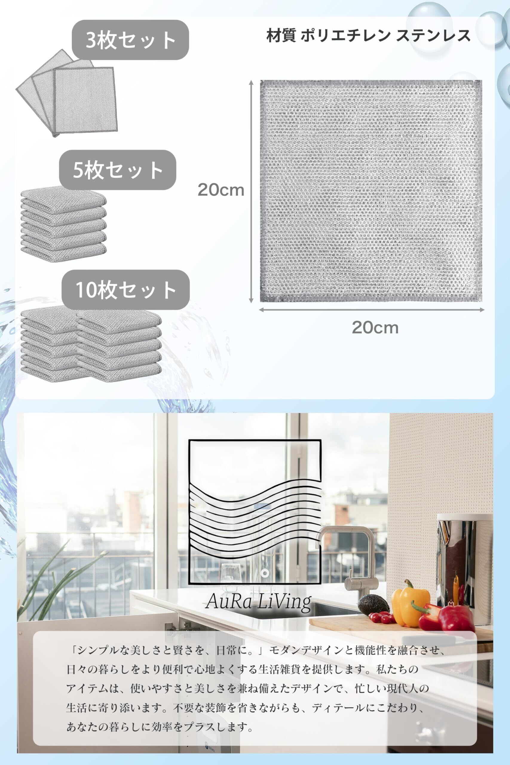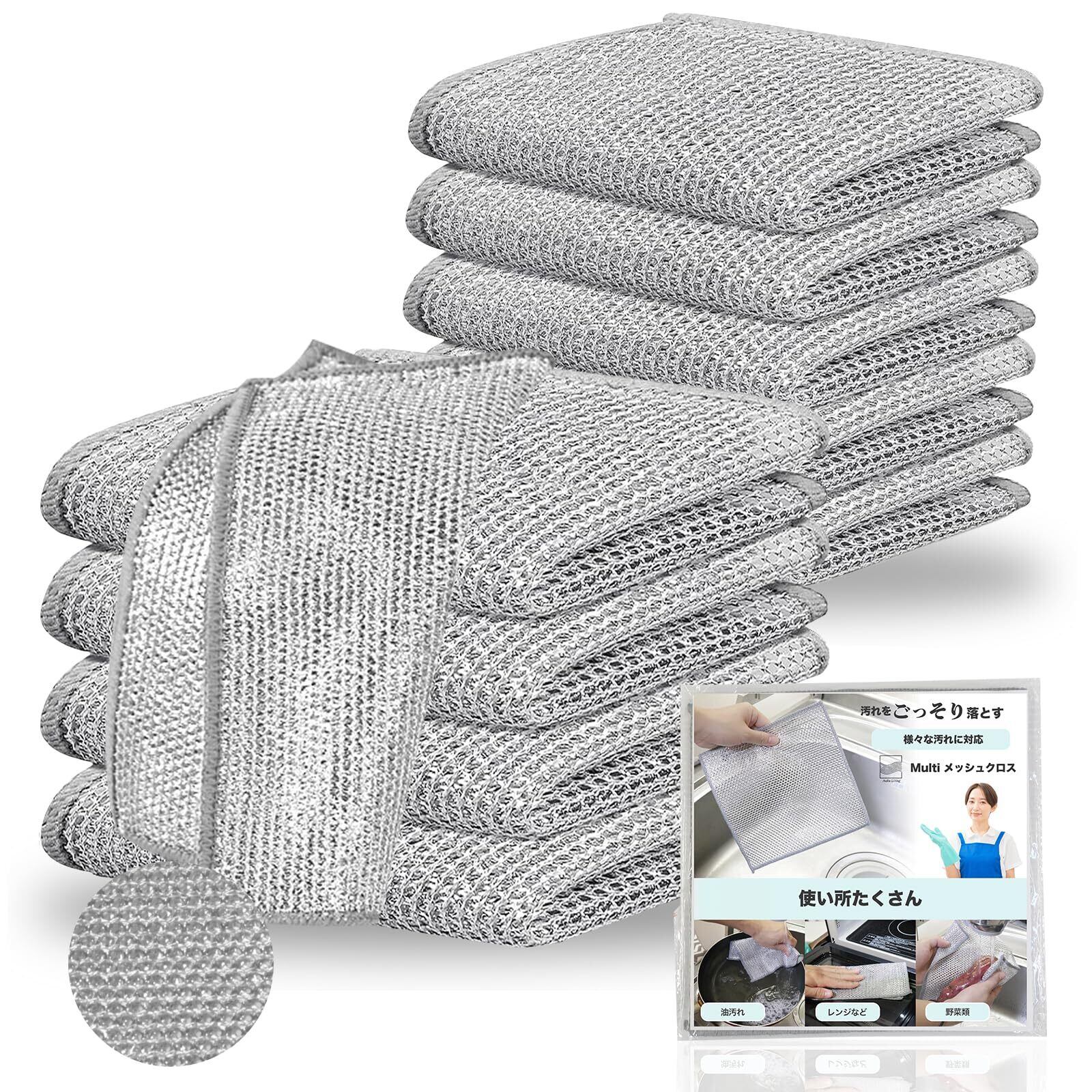 AuRaLiVing (オーラリビング) ふきん 油汚れ クロス リバーシブル竹炭キッチンクロス 布巾 焦げ落とし キッチン シンク 洗い物 掃除 速乾 吸水 二層構造 (シルバー10pcs)