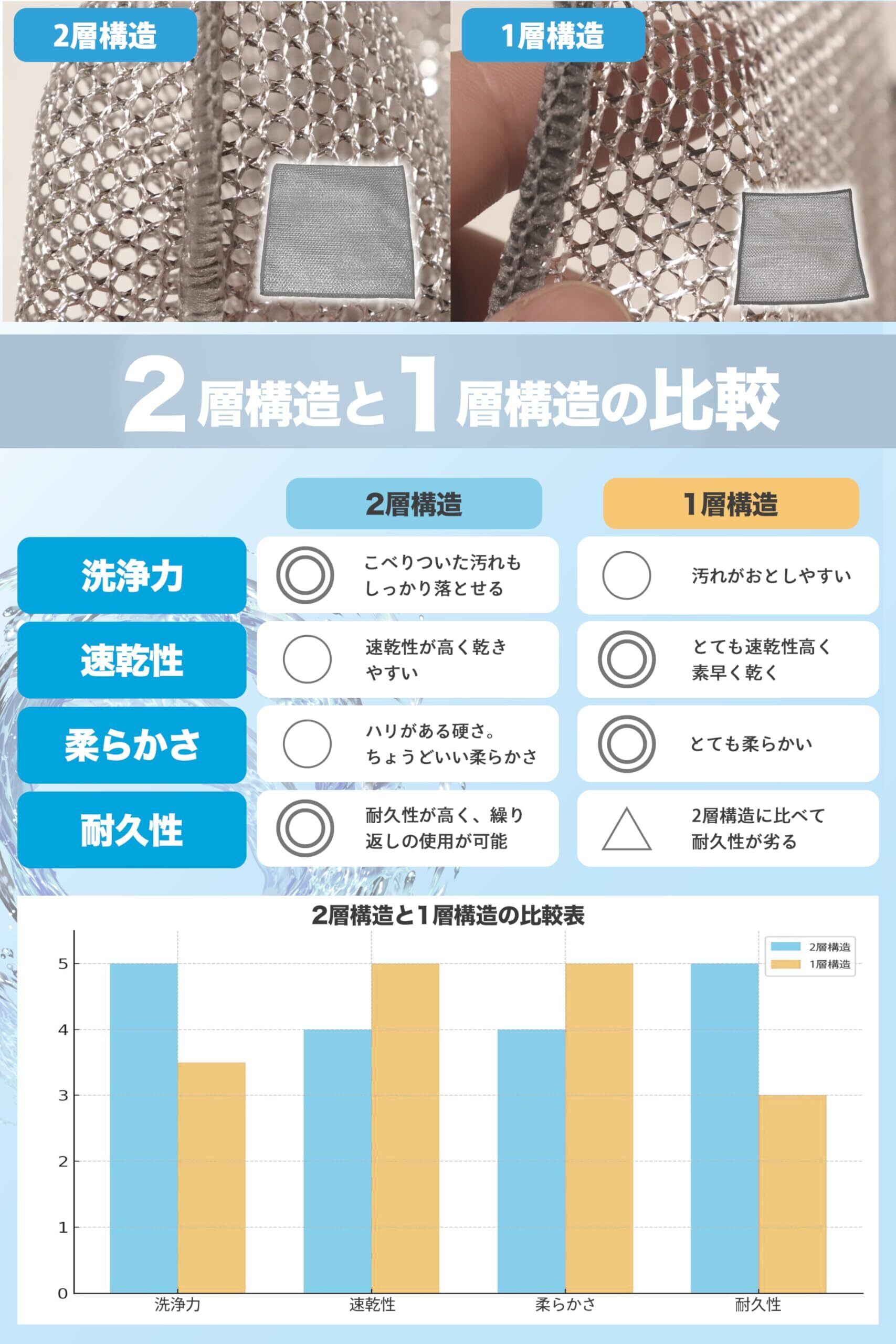 【泡立ちやすい!細かな二層構造】二層構造のクロスになっていて泡立ちやすくなっています。少量の洗剤でも泡立ちやすく、汚れをしっかり洗浄します