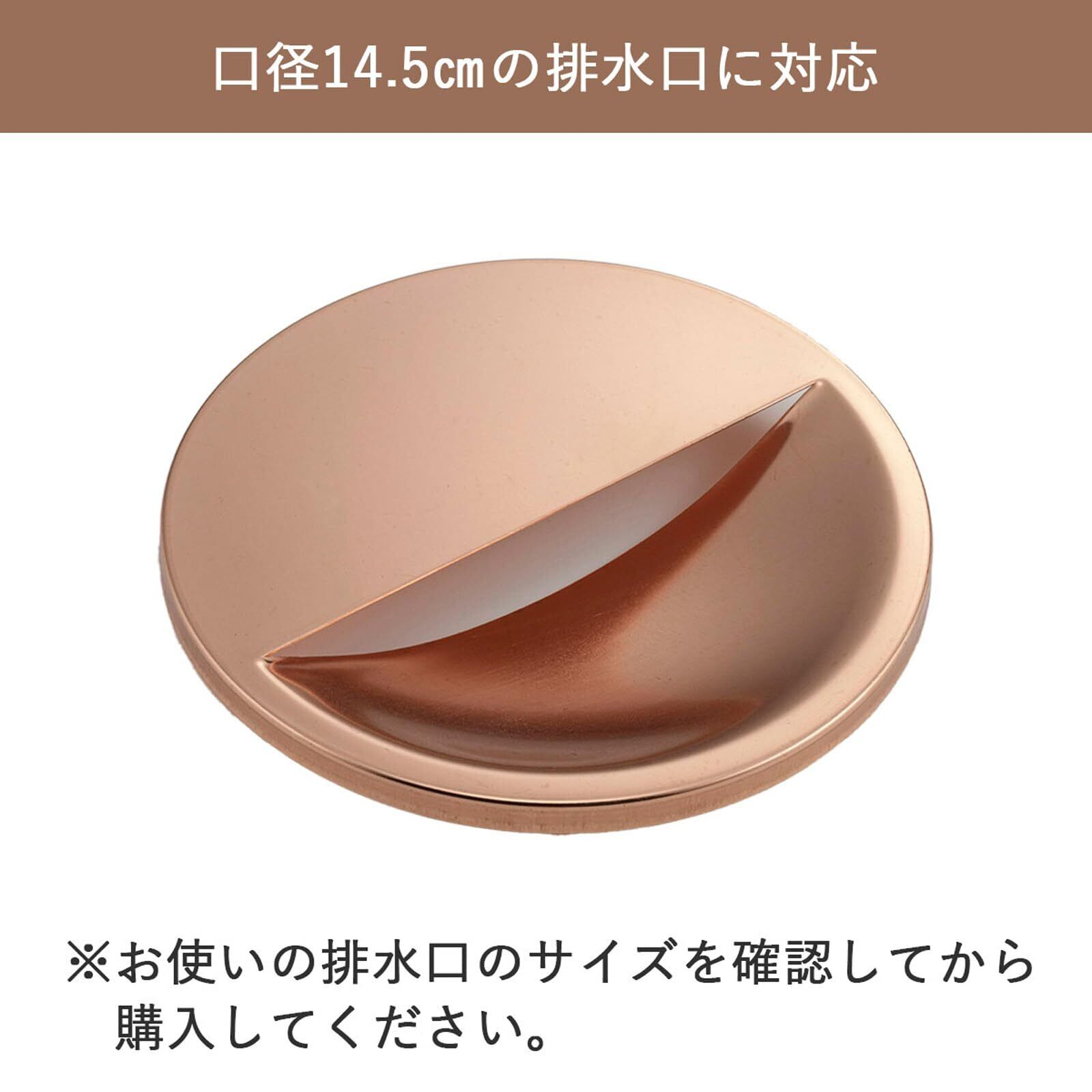 サイズ(約):直径14.4×高さ1.8cm、フチ高さ/0.7cm、適応排水口径/標準的な直径14.5cmに対応