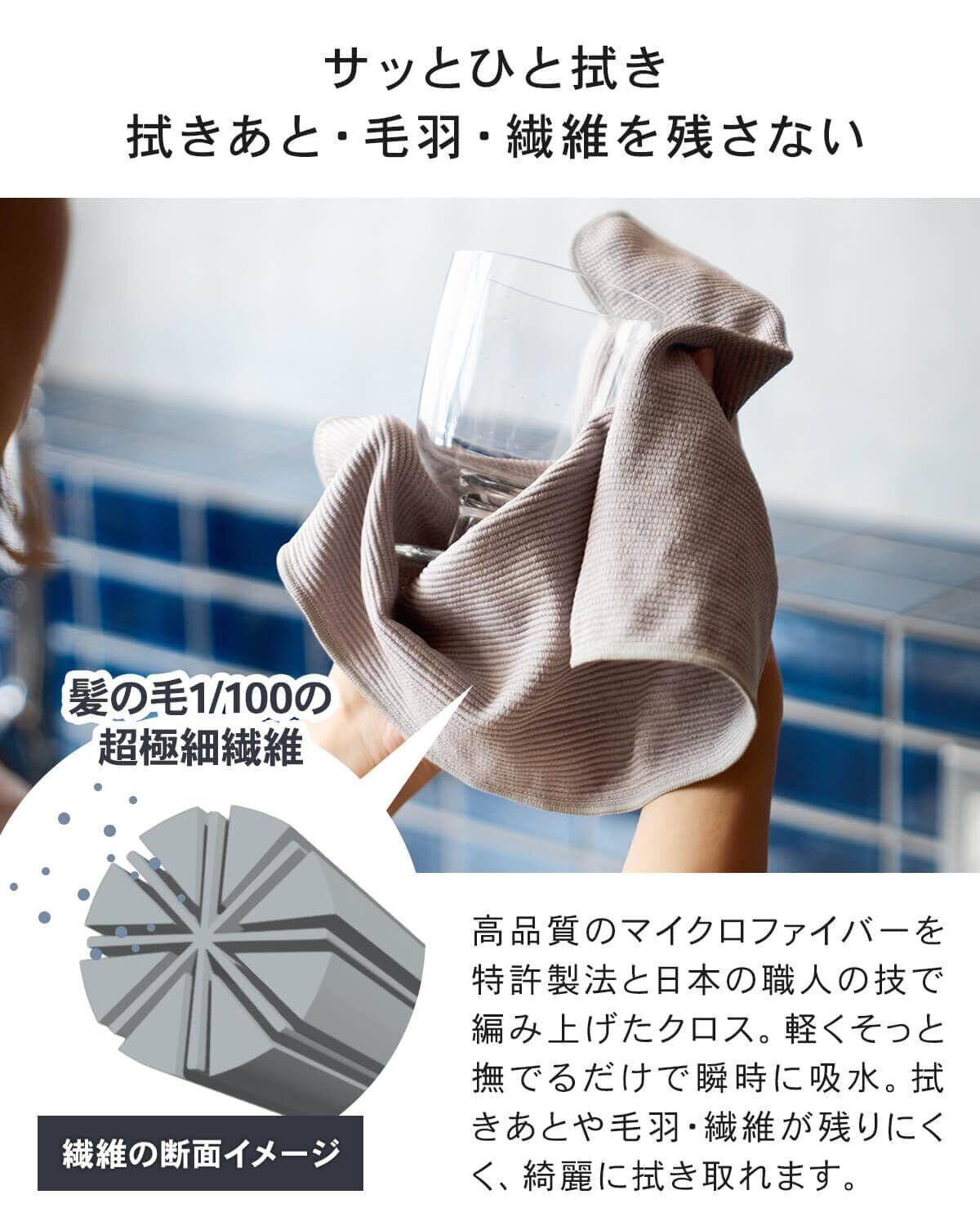 【有名ホテルや大手メーカーが採用するプロ仕様】拭きあとを残さず食器の水滴をスッと拭き取る、日本製ふきん・食器拭きクロスです。