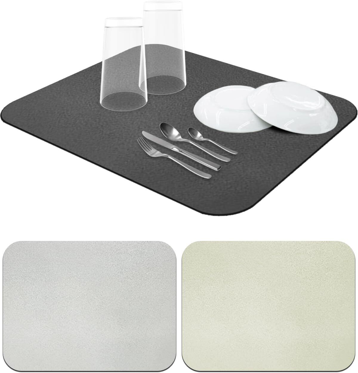水切り マット 珪藻土 銀イオン 日本製 キッチン 食器 (40×30cm, ダークグレー)
