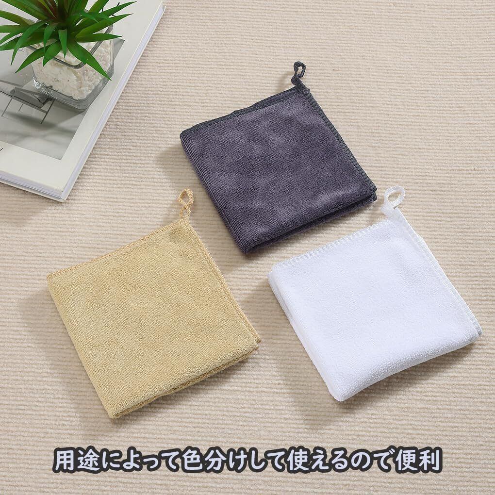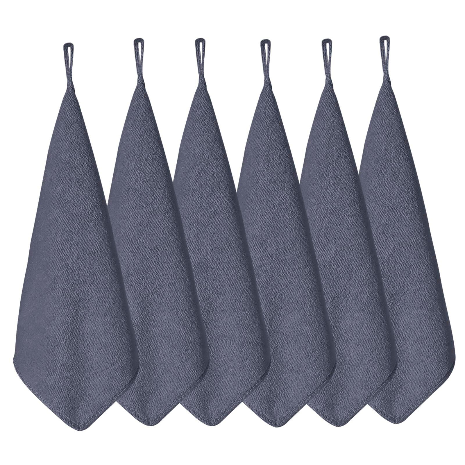 [HOOMCOOM] キッチンタオル キッチンクロス ふきん ループ付き 6枚セット 布巾 台拭き 食器拭き マイクロファイバー 厚手生地 吸水 速乾 30x30cm 防臭 衛生 抗菌 グレー