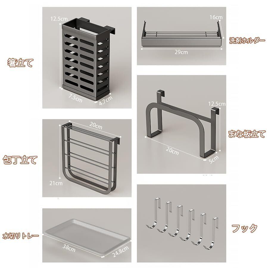 【大容量収納】幅は78cm、88cm、98cm、118cmの4サイズがあり、より多くの食器や皿を収納できます。箸立て、まな板立て、包丁立て、洗剤ラック、フックなどの付属品が付いています。シングルシンクやダブルシンクのキッチンに対応します。日常生活で使用するあらゆるキッチン用品を収納し、家族全員のニーズに応えます。