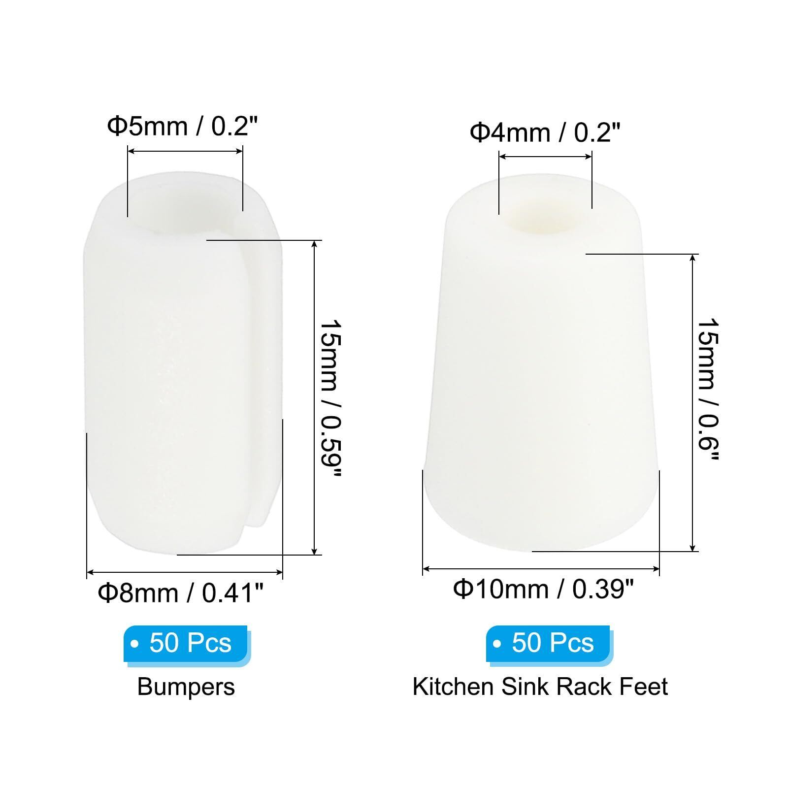 カラー:ホワイト;シンクラックフィートサイズ:4 x 10 x 15 mm / 0.16 x 0.4 x 0.6 "(内径*外径*高さ);バンパーサイズ:5 x 8 x 15 mm / 0.2 x 0.31 x 0.6 "(内径*外径*高さ)