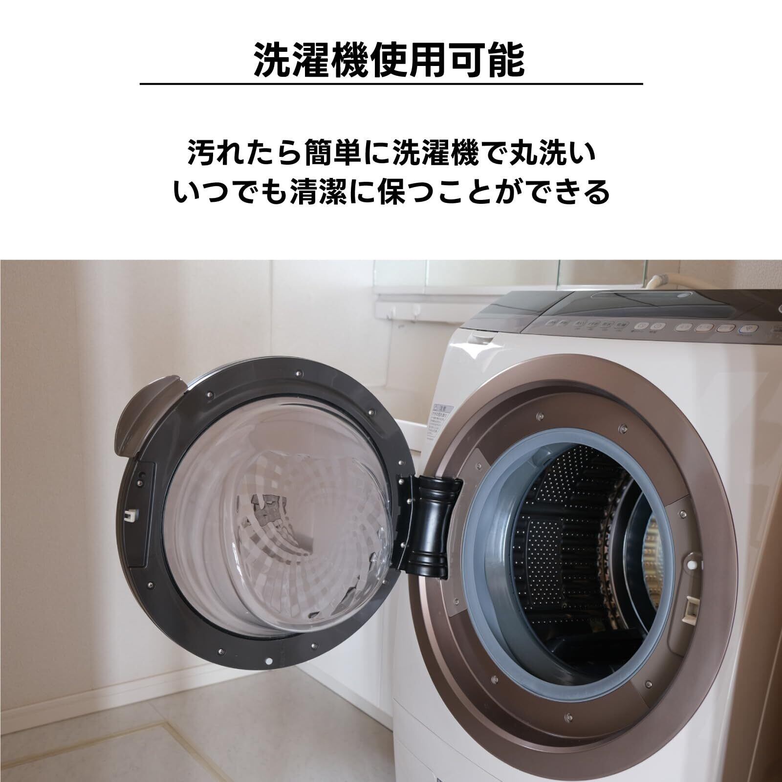 【使用後もスマート】ループ紐が付いているのでフックに引っかけて干せます。折り目が付いているので半分に折って収納可能です。洗濯機にて洗濯ができます。