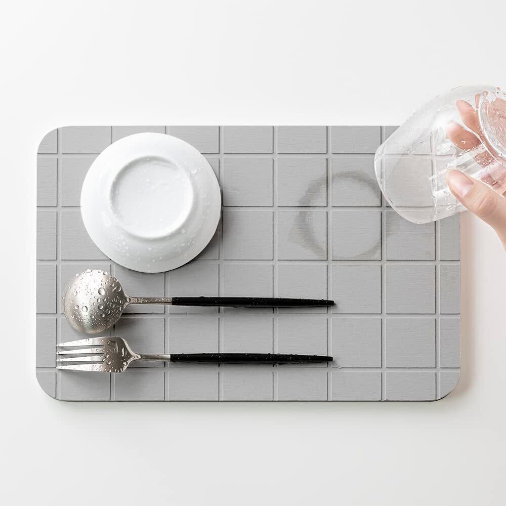 アンドエヌイー(&NE) ラバストーンドライボード Lattice LavaStone グレー 幅29.2cm×奥行19.2×厚さ1cm 吸水マット 洗い物 食器 ハード 小さめ ノンアスベスト 抗菌 消臭 速乾 吸水 溶岩石 NEO-236-GY