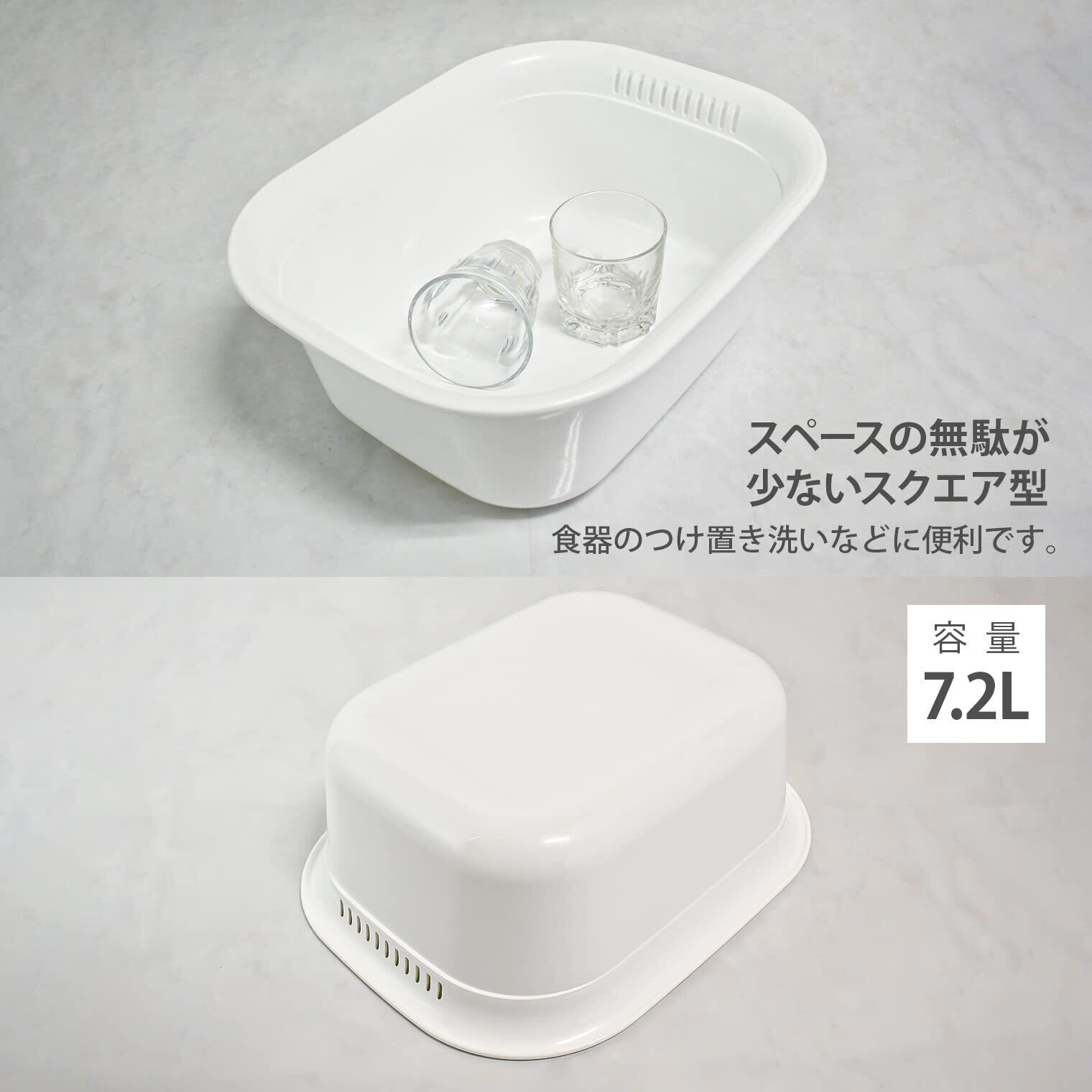 リス 洗い桶 角型 ホワイト W29×D36×H14cm H&H ウォッシュタブ スクエア 日本製