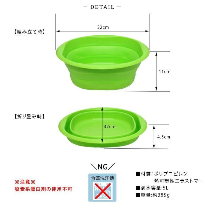 折り畳める シンク用 洗い桶 5L 約32×32×高11cm コンパクト シリコン製 グリーン