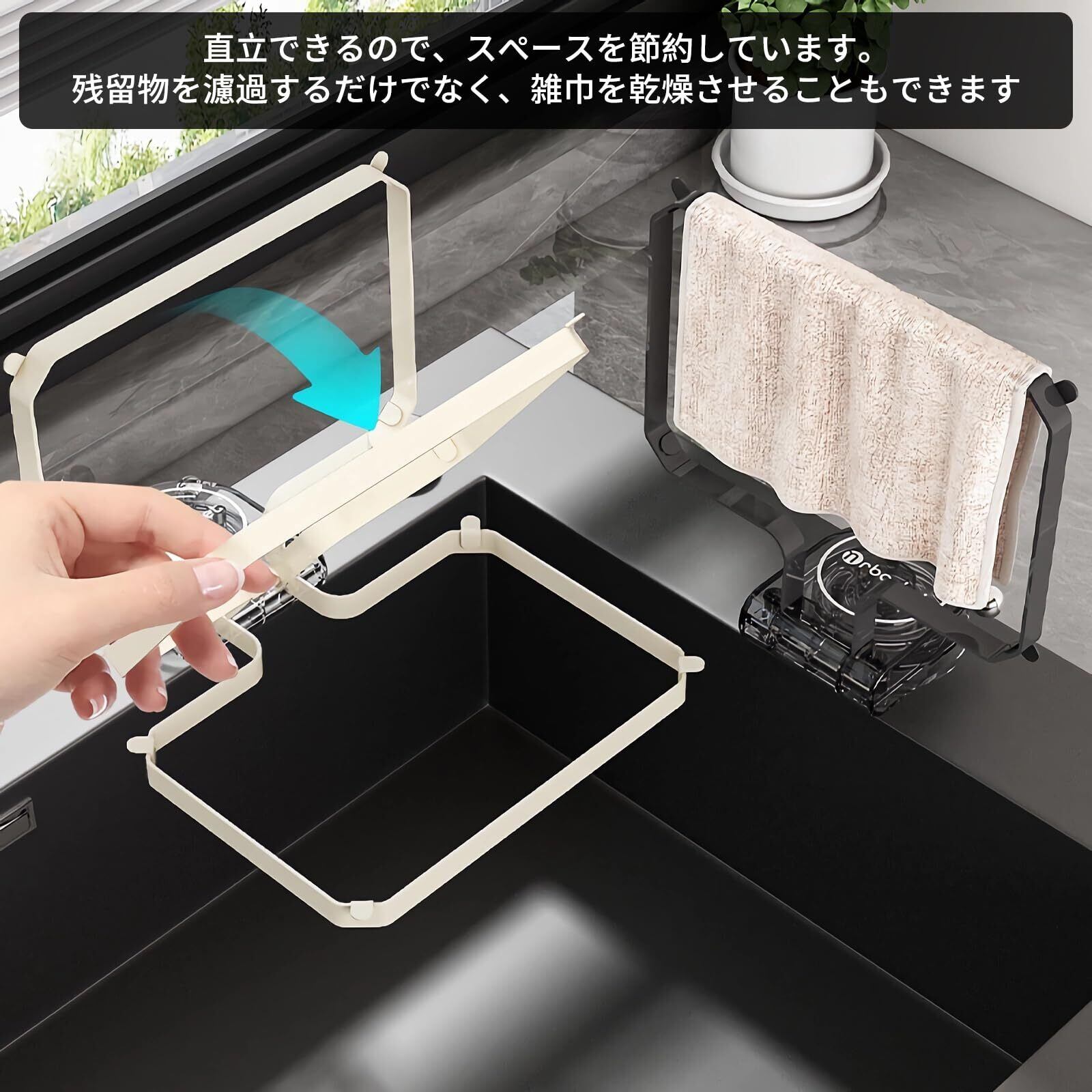 三角コーナー 水切りネット 強力吸盤 排水口 ゴミ受け 生ゴミ処理 清潔 三角コーナーいらず キッチン 浮かせる三角コーナー 折り畳み キッチン/台所/シンク用 (透明)