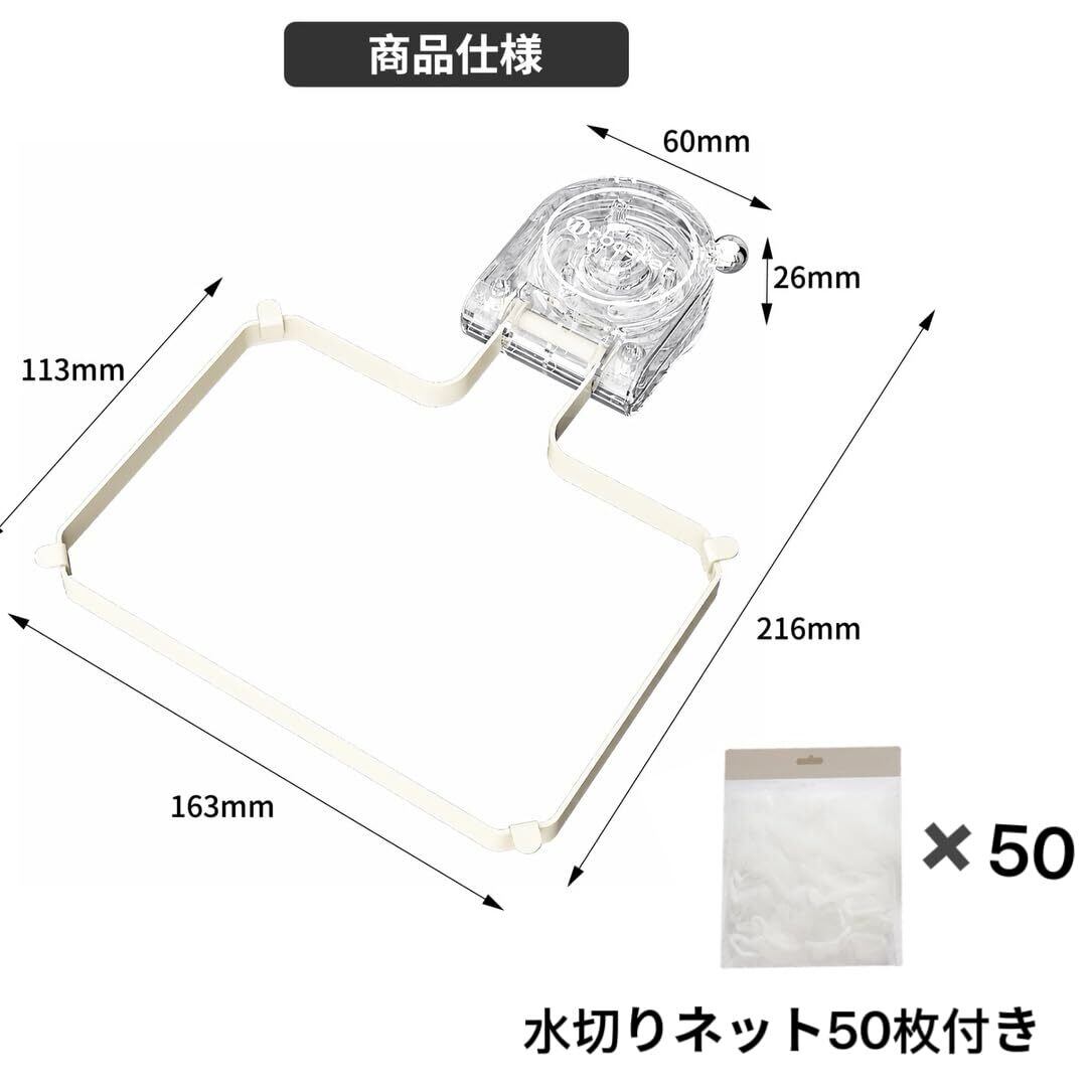 三角コーナー 水切りネット 強力吸盤 排水口 ゴミ受け 生ゴミ処理 清潔 三角コーナーいらず 水切り袋 キッチン ネット 浮かせる三角コーナー 折り畳み キッチン/台所/シンク用 水切りネット 50枚付き (透明)
