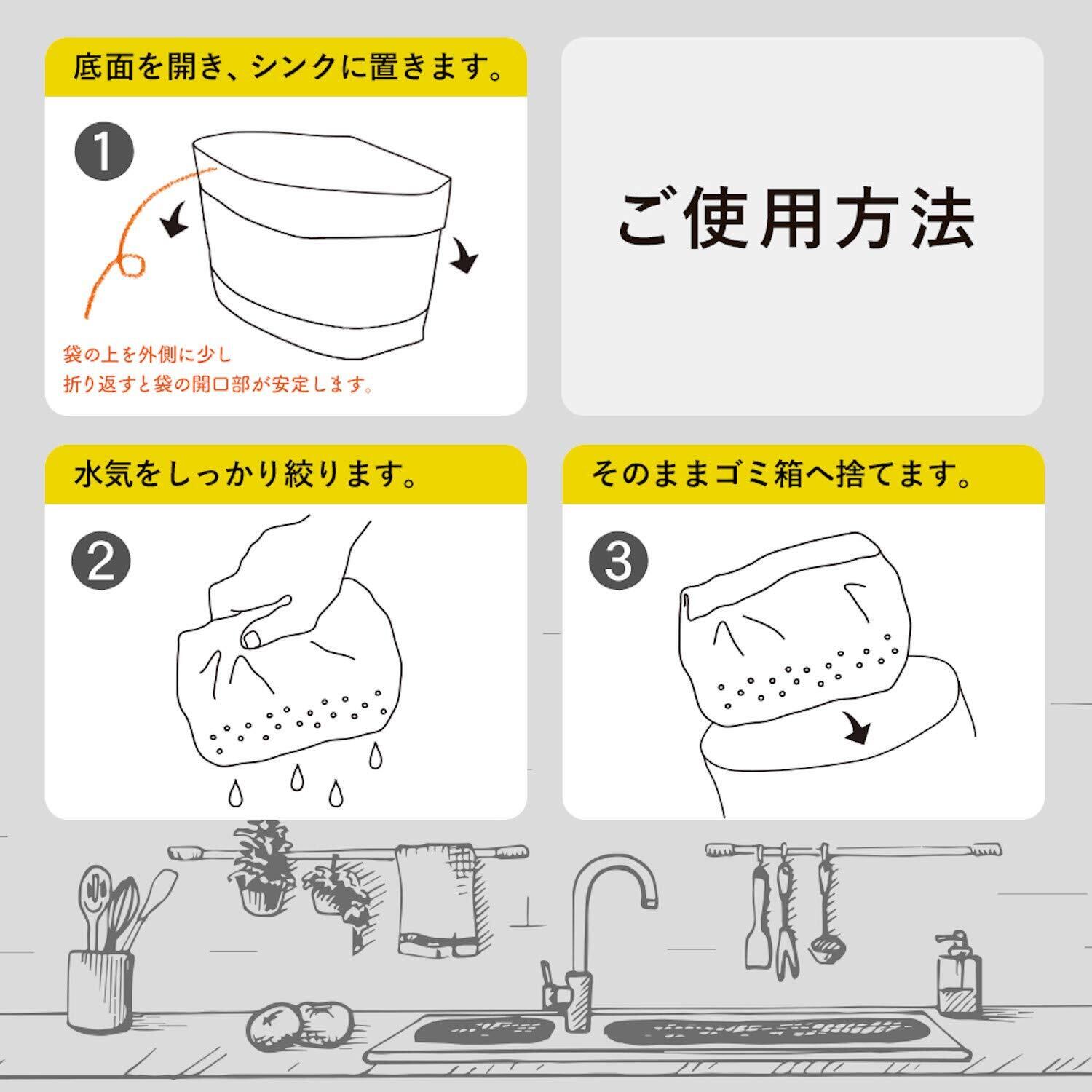 ●ごみを入れ、捨てる時は袋の上を折り、押さえるように水分を絞ってください