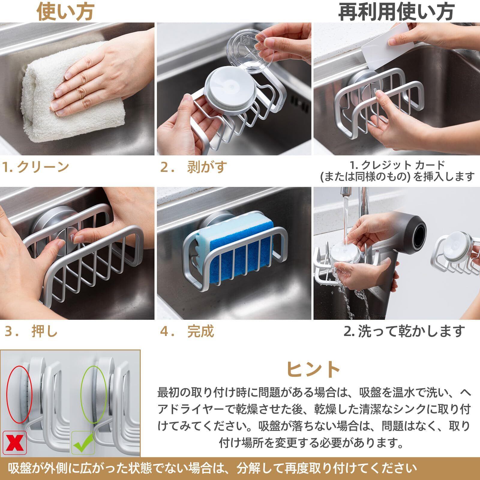 抜群なデザイン:シンクをコンパクトなスペースに収納できます。スポンジ、スクラバー、たわし、排水栓などを収納できます。水切れが良く、通気性が良いので乾きが早く清潔です。直接に流し台に置いても、カビ水垢がつくことを防ぎます。キッチンのシンクやセラミックタイルの壁に最適です