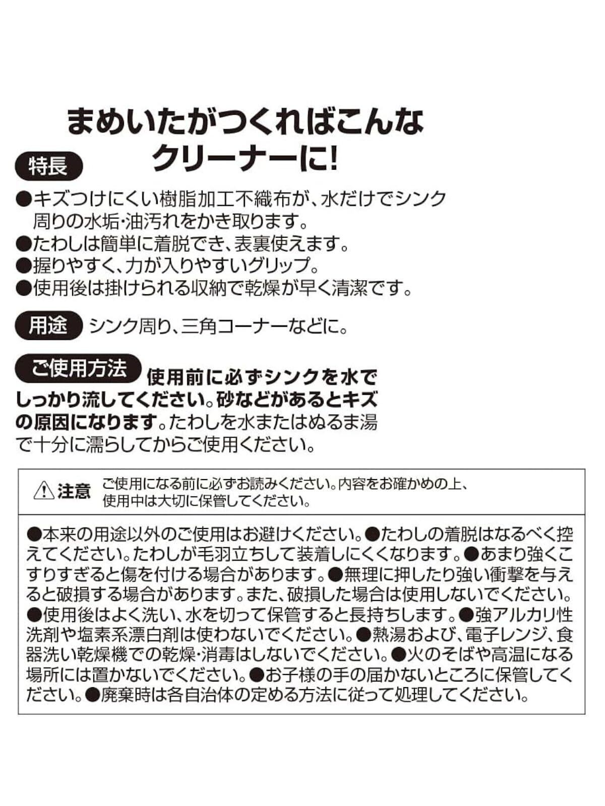 ●キズつけにくい丈夫な樹脂加工不織布が、水だけでシンク周りの汚れをかきとります。