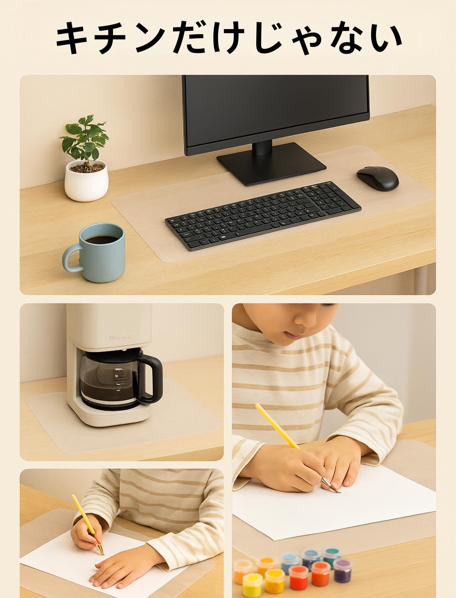 LightBeam シリコンマット 耐熱260℃×耐冷-60℃|滑り止めシリコンマット|水洗いOK&収納簡単|調理台・家電下の保護に (半透明, 40x60cm)