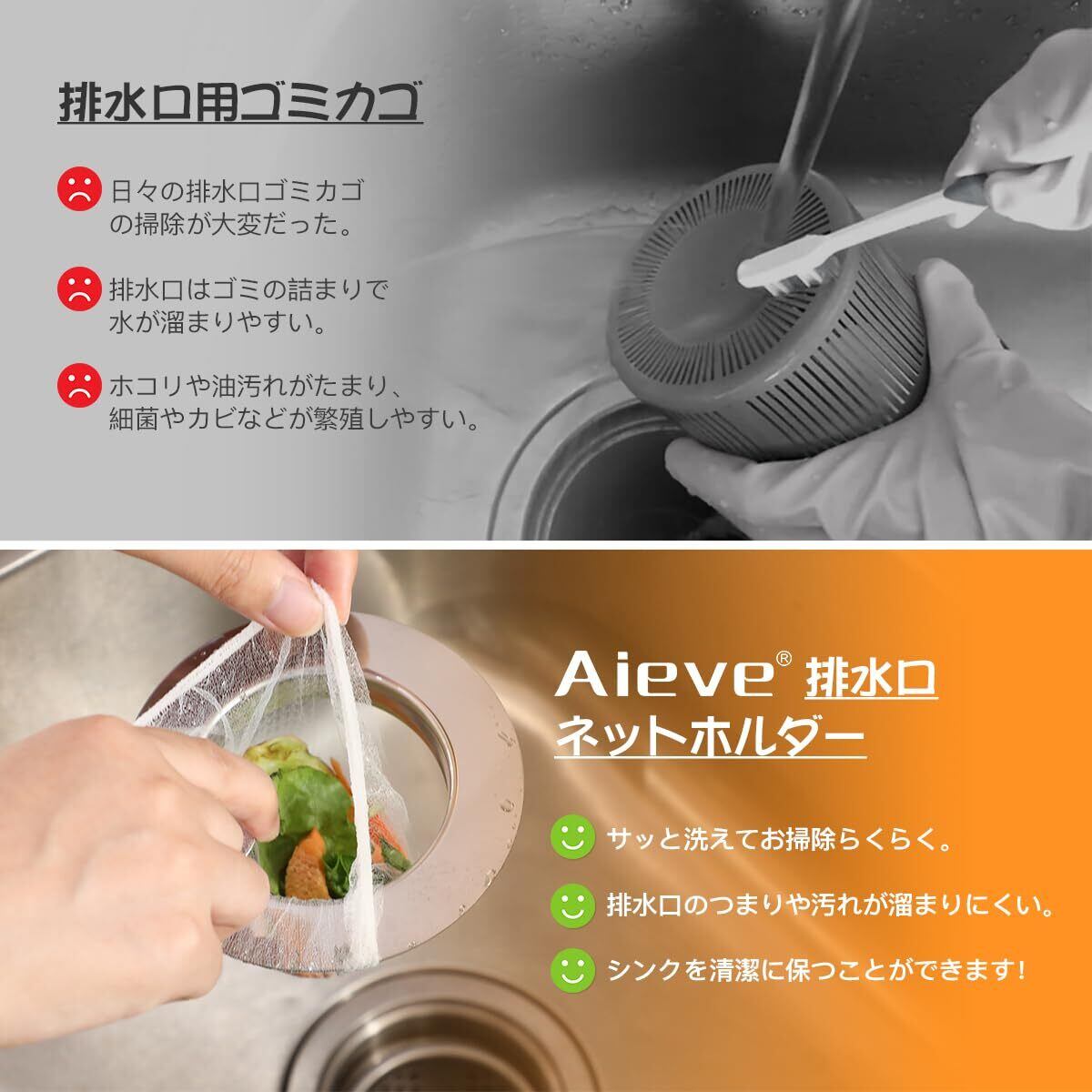 Aieve 排水口 ネットホルダー 排水口 8cm シンク ゴミ受け 排水溝 リング ステンレス製 バスケットいらず キッチン 台所 流し台 シンク 口径7.5~10cm対応 中