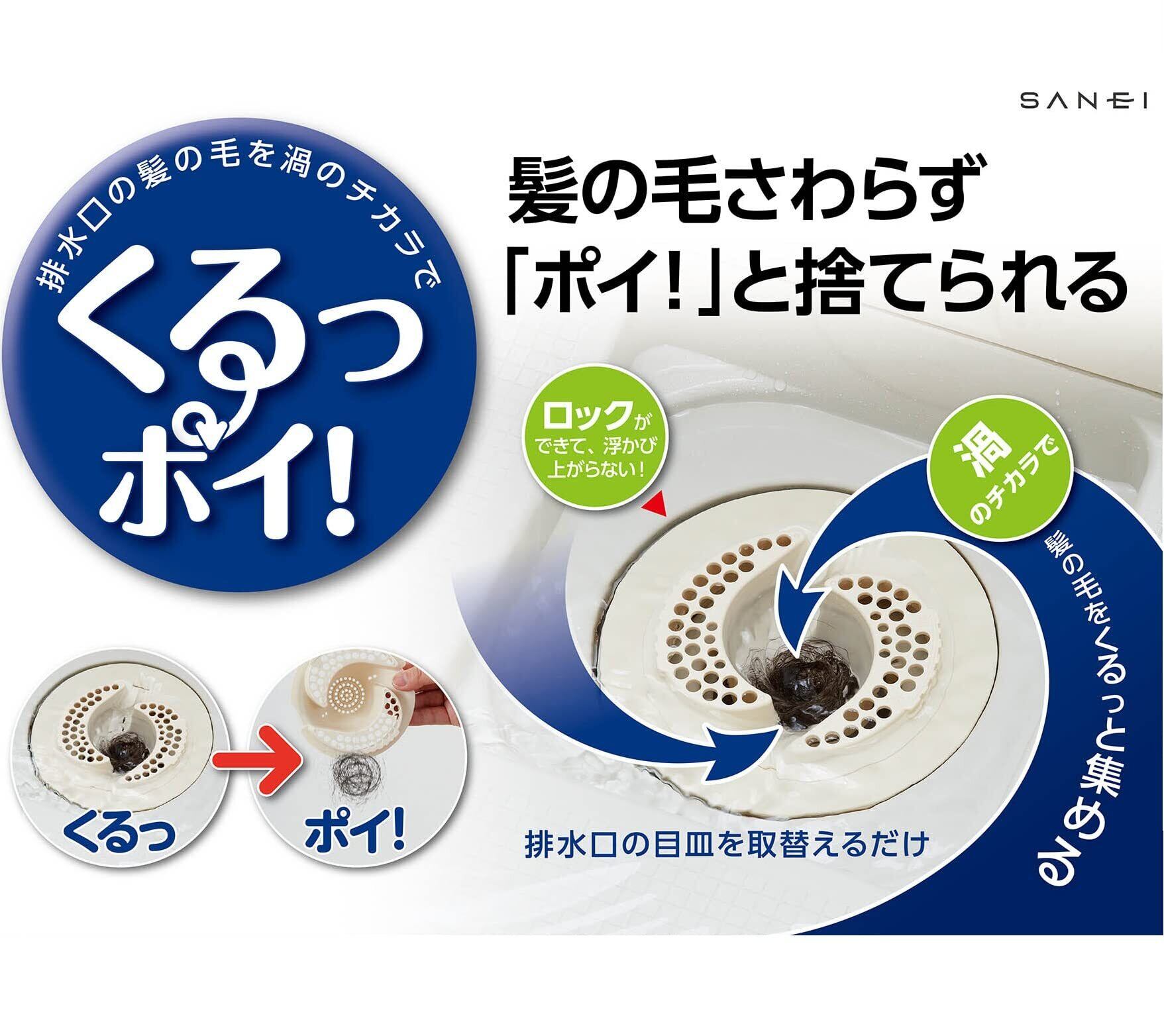 SANEI(サンエイ) ヘアーキャッチャー くるっポイ ユニットバス排水口用 髪の毛集まる ロック式 PH397