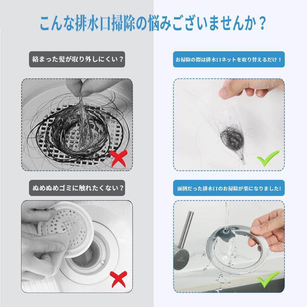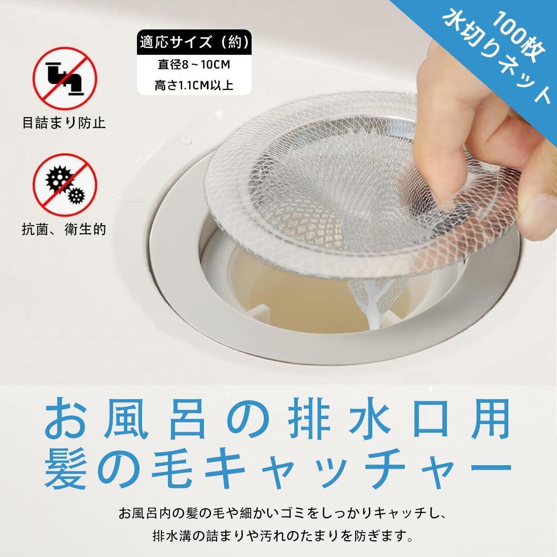 【 改良版仕様】: 改良版固定歯はネットが固定歯に引っかかって落ちにくい。口径約10cm排水口対応。内径7.7、外径10.2、高さ1.1cmです。 直径8~10cm、高さ1.1cm以上の排水口に適用。パッケージ内容:髪の毛キャッチャーX1個;水切りネットX 100枚