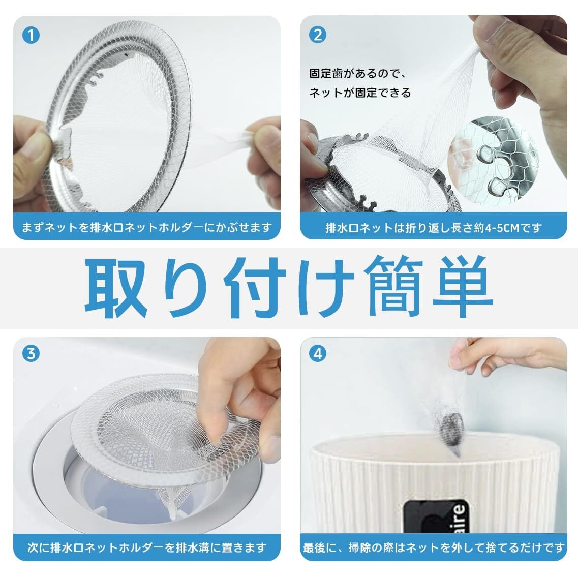 XIAOSUO 排水口 お風呂 ゴミ受け 髪の毛キャッチャー お風呂 排水口ネットホルダー 100枚 水切りネット付き 排水溝 ゴミ受け ステンレス製 髪の毛 細かなゴミ 排水口径約φ102mm用 固定歯